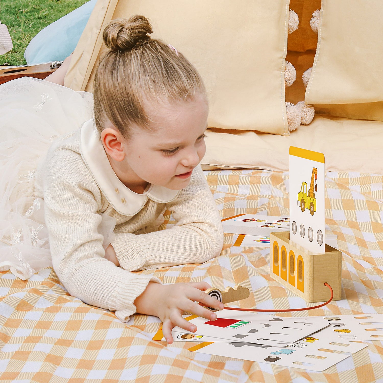 Das logische Schlüsselspiel- Beginner von TOPBRIGHT ist eine liebevoll gestaltete Einladung zum Mitdenken. Kinder ab 3 Jahren entdecken hier auf spielerische Weise Farben, Zahlen und einfache Zusammenhänge – und prüfen direkt selbst, ob sie richtig lagen: Nur die passende Lösung öffnet die Karte mithilfe des Schlüssels. Das sorgt für echte Erfolgserlebnisse, stärkt das Selbstvertrauen und macht Lust auf mehr. Ganz nebenbei fördert das Spiel auch die Feinmotorik – Karten einsetzen, Schlüssel drehen, Lösungen ausprobieren. Die insgesamt 80 Aufgaben auf 40 doppelseitig bedruckten Karten sind in verschiedenen Schwierigkeitsstufen aufgebaut: vom ersten Farbverständnis bis zu einfachen Logikrätseln. So wächst das Spiel mit – und bleibt über lange Zeit spannend.
