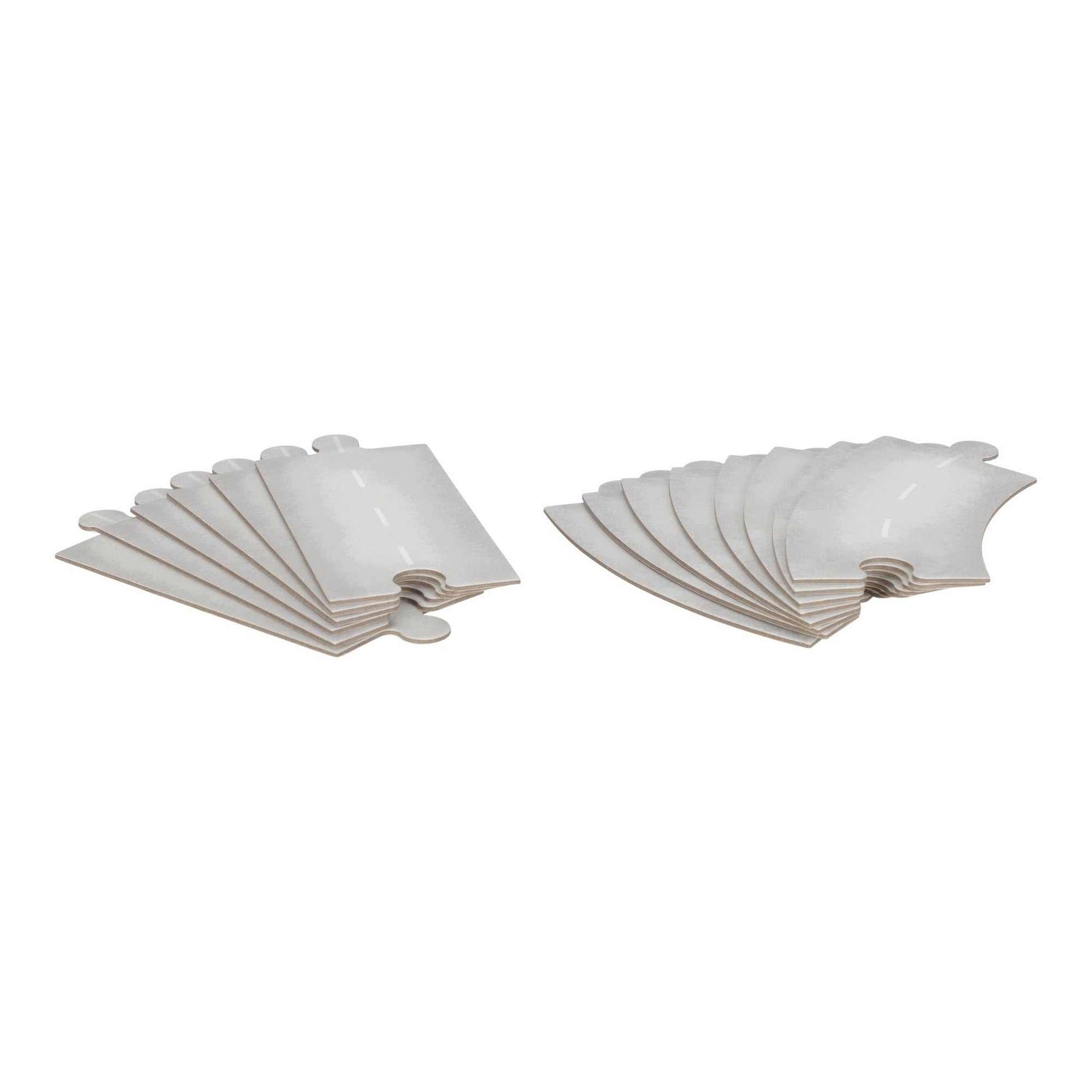 Das Set enthält zwei farbenfrohe Rennwagen, passende Fahrerfiguren, eine Ziellinie, Verkehrsschilder, ein Siegerpodest sowie eine goldene Trophäe. Die Kartonrennstrecke besteht aus einzelnen, robusten Puzzleteilen, die sich spielend leicht zusammensetzen lassen.