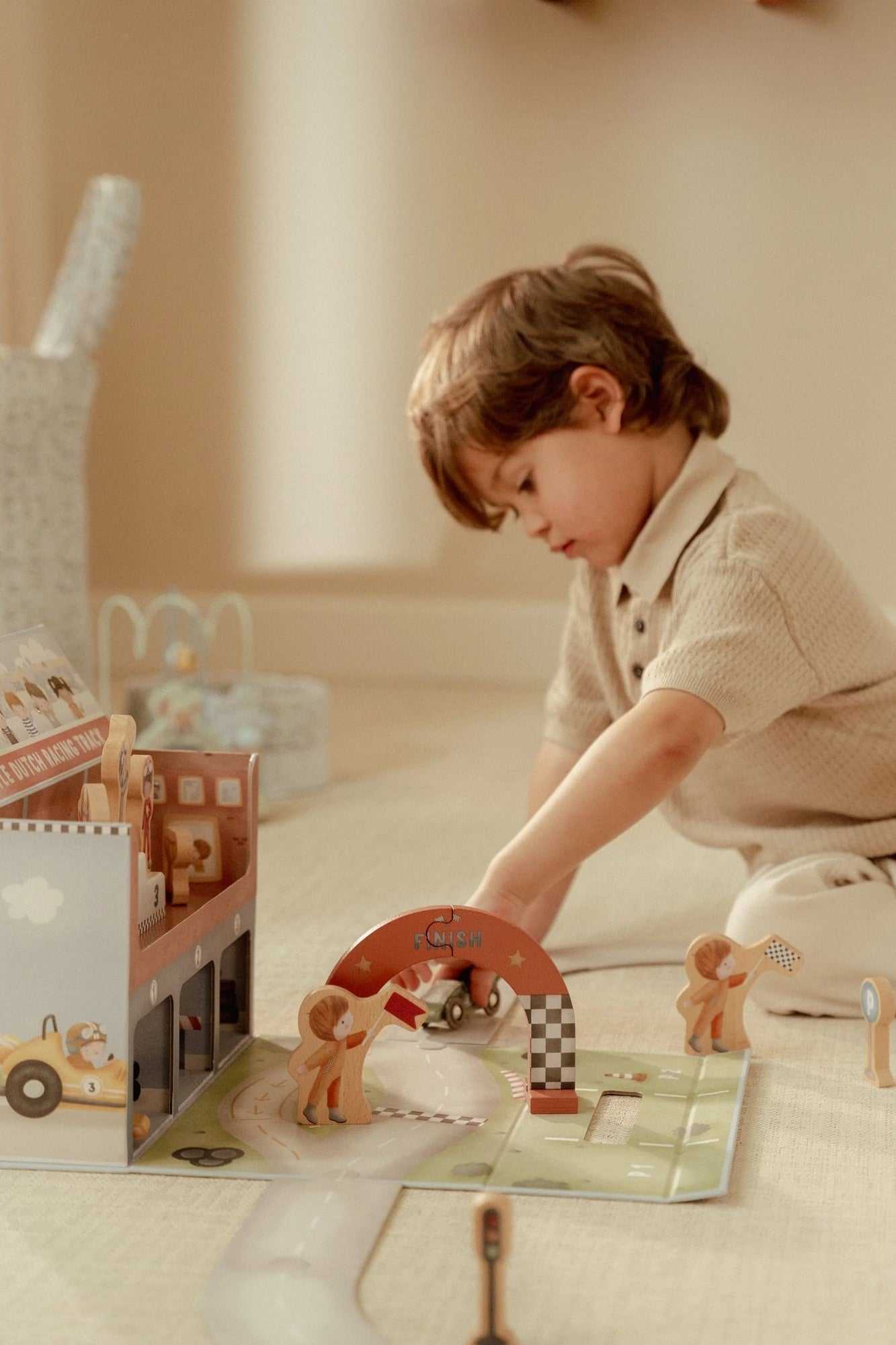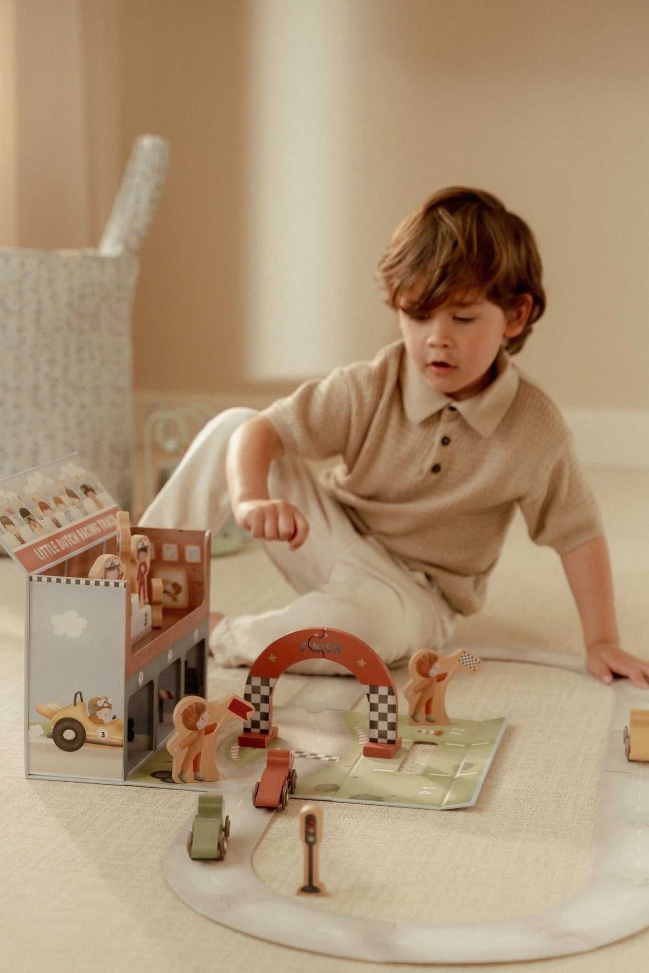 Start frei für kleine Motorsport-Fans: Das Modell „Rennstrecke im Koffer“ von Little Dutch, verwandelt sich im Handumdrehen in eine detailreiche Rennstrecke. Einfach auspacken, zusammenbauen und losfahren – ganz ohne Werkzeug.