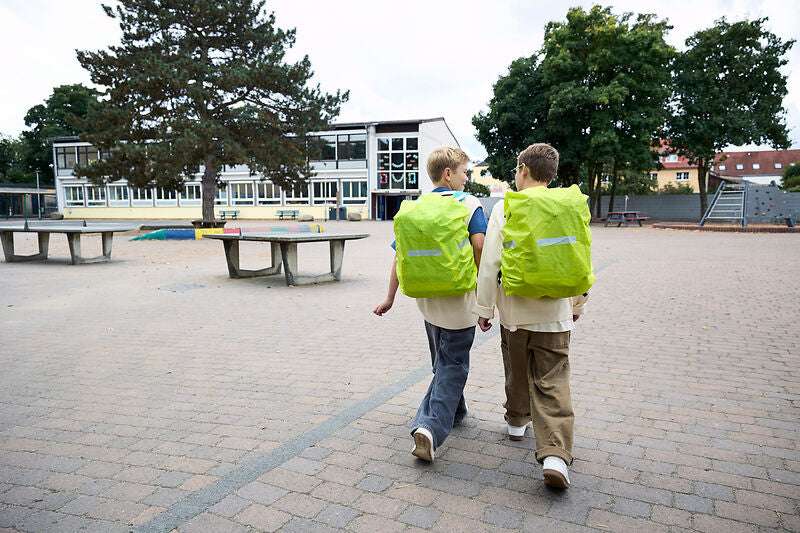 Sicherheit & Sichtbarkeit: Reflektoren, neonfarbenes Regencover, stabiler Boden, PFC-freie Imprägnierung