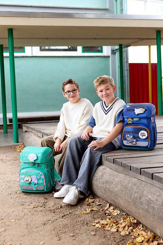 Das Set enthält alles, was kleine Abenteurer für den Schulalltag brauchen: Schulranzen, Turnbeutel, Federmäppchen mit Stiften, Schlampermäppchen, Regencover und 2 kreative Patches zum Personalisieren. Nachhaltige Materialien aus recyceltem Polyester, PFC-freie Imprägnierung und faire Produktion machen das Set zu einer guten Wahl für Kinder und Umwelt.