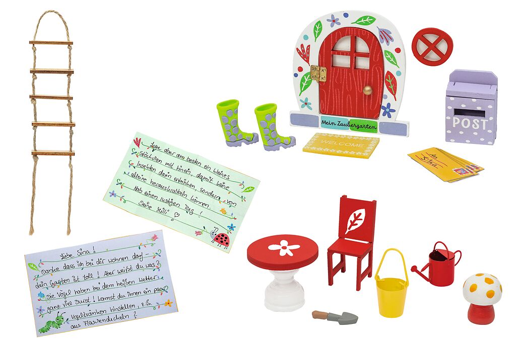 Mit dieser zauberhaften Feen- und Wichteltür von moses ziehen kleine Gartenfreund*innen im nächsten Baum, auf dem Balkon oder sogar Kinderzimmer ein. Fenster und Türen leuchten im Dunkeln und laden geheimnisvolle Besucher*innen wie Gartenfeen oder Waldwichtel ein. Das liebevoll gestaltete 13-teilige Set enthält alles, was magische Wesen brauchen – von Gummistiefeln und Gießkanne bis zu winzigen Briefen. So entstehen fantasievolle Geschichten und leuchtende Augen bei kleinen Naturfreund*innen.