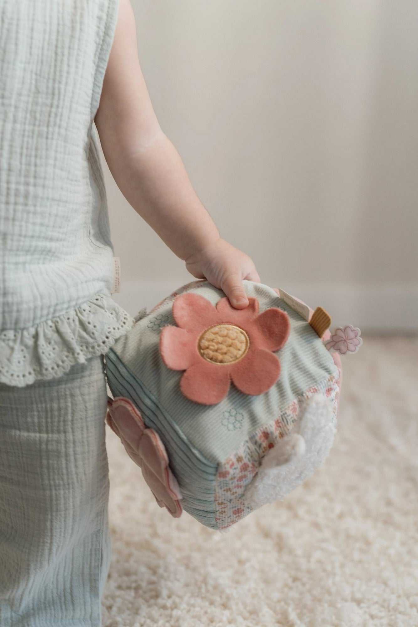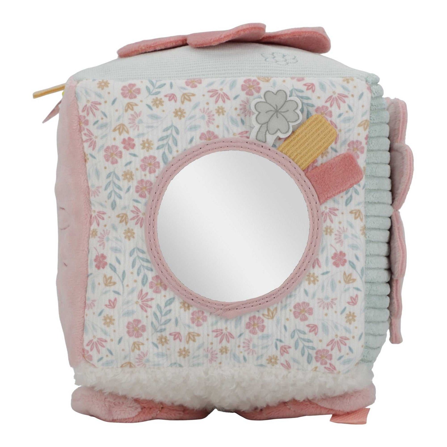 Dieser wunderbar weiche Aktivitätswürfel von Little Dutch im zarten Lucky Blossom Design lädt kleine Entdeckerinnen und Entdecker zum Staunen, Greifen und Erkunden ein. Jede Seite überrascht mit einer anderen Aktivität: verschiedene Texturen, Formen und liebevolle Details fördern spielerisch die Sinneswahrnehmung und sorgen für immer neue Aha-Momente.