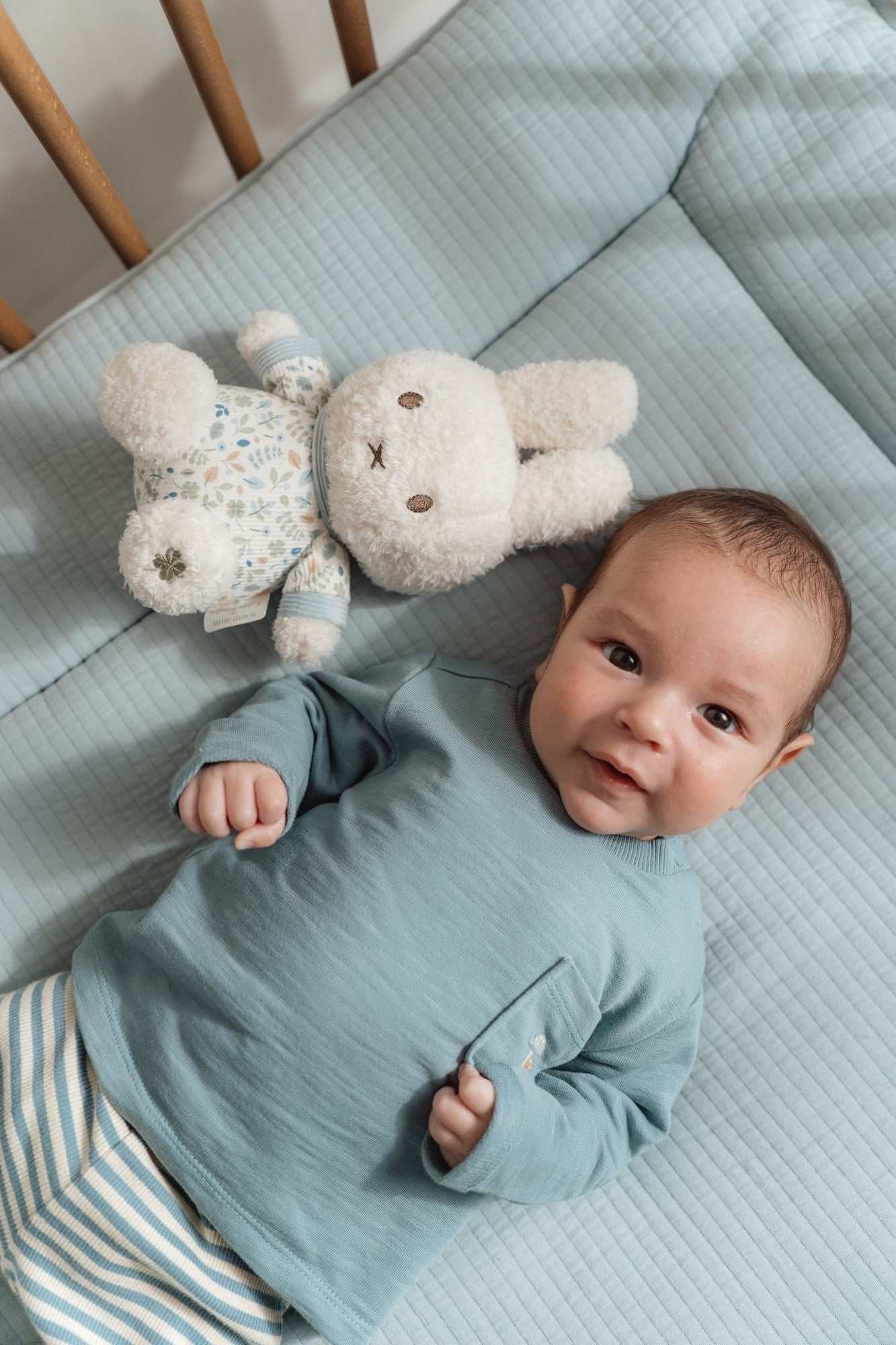 Bereit für eine Umarmung? Diese bezaubernde miffy von Little Dutch wartet nur darauf, gekuschelt, gedrückt und überallhin mitgenommen zu werden. Unglaublich weich und angenehm handlich begleitet sie Babys und Kleinkinder durch den Alltag, vom Mittagsschlaf bis zum kleinen Abenteuer unterwegs. Gefertigt aus weichem Plüsch und bedrucktem Cord trägt Kuschel miffy ihr hübsches Lucky Leaves Outfit, ein liebevoll gestaltetes Design. Mit einer Größe von 20 cm ist sie perfekt für kleine Arme gemacht. Ein ikonisches Häschen, das in keinem Babyzimmer fehlen darf und Geborgenheit mit zeitlosem Stil verbindet. Modell: Nijn451 Farbe: Blau Größe: ca. 20 cm Zertifizierung: GRS Design: Glückliche Blätter Material: 100 % Polyester Produktmaße: 10 × 16 cm Altersempfehlung: ab 0 Monaten Pflegehinweis: Maschinenwäsche bei 30 °C Warnhinweis: Achtung! Bitte vor dem ersten Gebrauch alle Etiketten und Befestigungen entfernen. Benutzung nur unter Aufsicht von Erwachsenen.