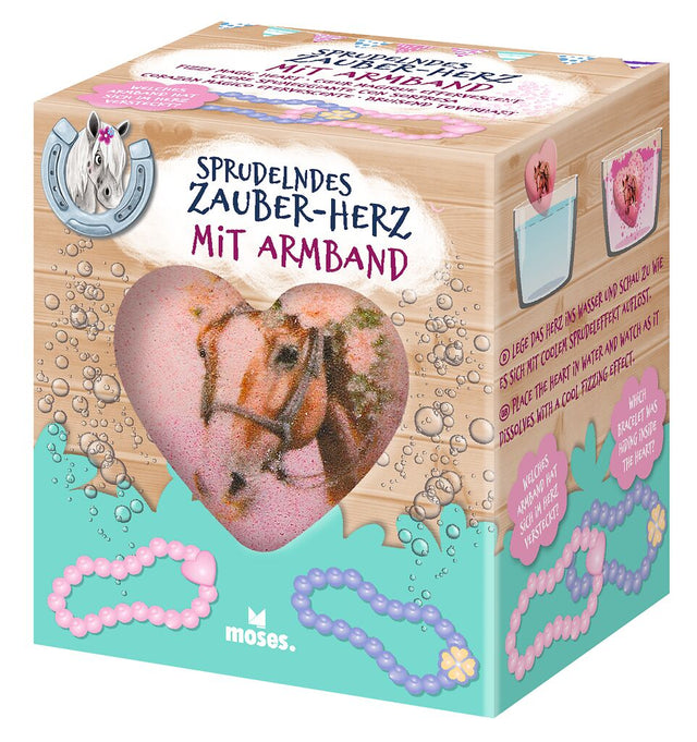 Plötzlich sprudelt es – und ein Armband taucht auf! Dieses magische Herz von moses löst sich im Wasser auf und bringt ein hübsches Armband mit niedlichem Charm zum Vorschein. Ein kleines Erlebnisgeschenk für Pferdefans – voller Überraschung und Sprudelfreude.