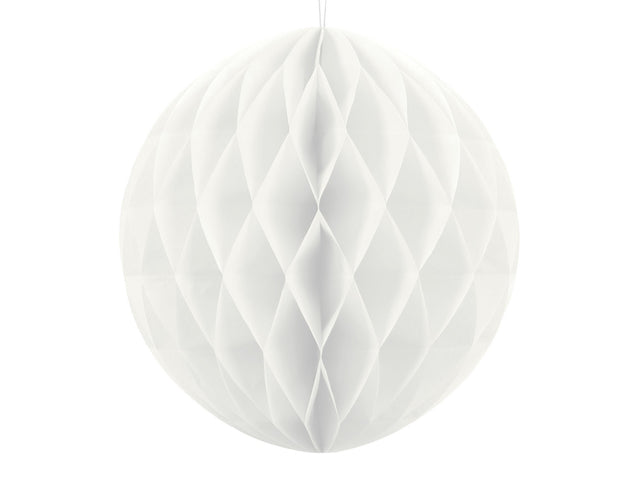 Wunderschöne Honeycomb-Papierkugel in hellem Weiß.