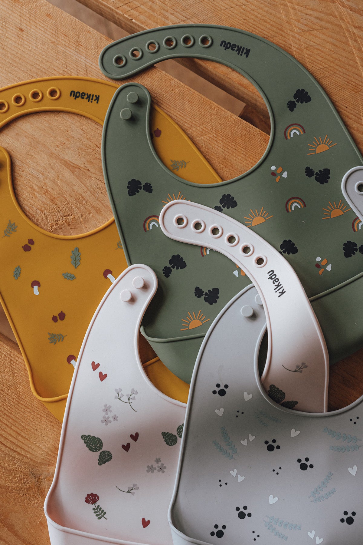 Die BPA-freien Silikon Lätzchen sind unverzichtbare Helfer während des Essens, insbesondere wenn dein Kind gerade damit beginnt. Dank der praktischen Auffangschale am unteren Rand des Lätzchen ist es auch kein Problem, wenn mal etwas daneben geht. Die Lätzchen, mit kindlich-verspielten Aufdrucken, sind aus schadstofffreiem, lebensmittelechtem Silikon und lassen sich im Nacken auf die richtige Größe verstellen. Mit einem Tuch feucht abwischen oder in der Spülmaschine reinigen. Altersempfehlung: 0+. Maße: 30,5 x 23cm.