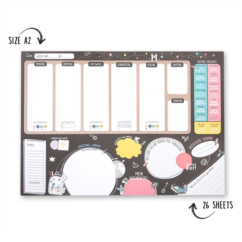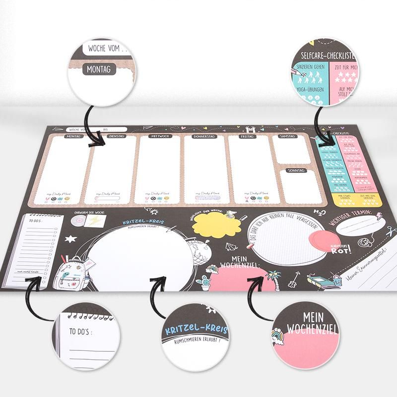 Do more of what makes you happy! Mach es dir leicht, deinen Alltag anschaulich zu planen! Deine „feel good“ Schreibunterlage von Trendhaus im großen A2-Format und ansprechenden Design macht es dir ganz leicht deine wöchentlichen Aktivitäten organisieren und deine Termine im Überblick behalten! Zudem findest du viel Platz zum Notieren, kreativen Kritzeln und deine ganz persönliche Selfcare-Checkliste - perfekt für Schule, Uni, Ausbildung oder am Arbeitsplatz! Inhalt: 26 Wochenblätter für ein halbes Jahr voller produktiver Möglichkeiten!