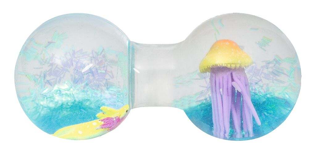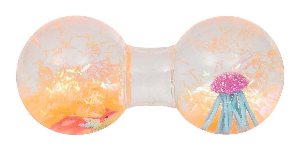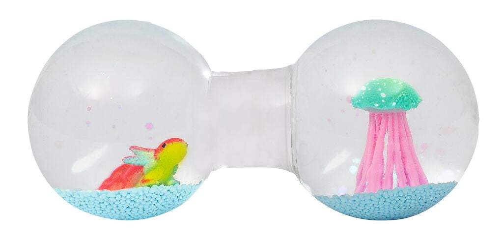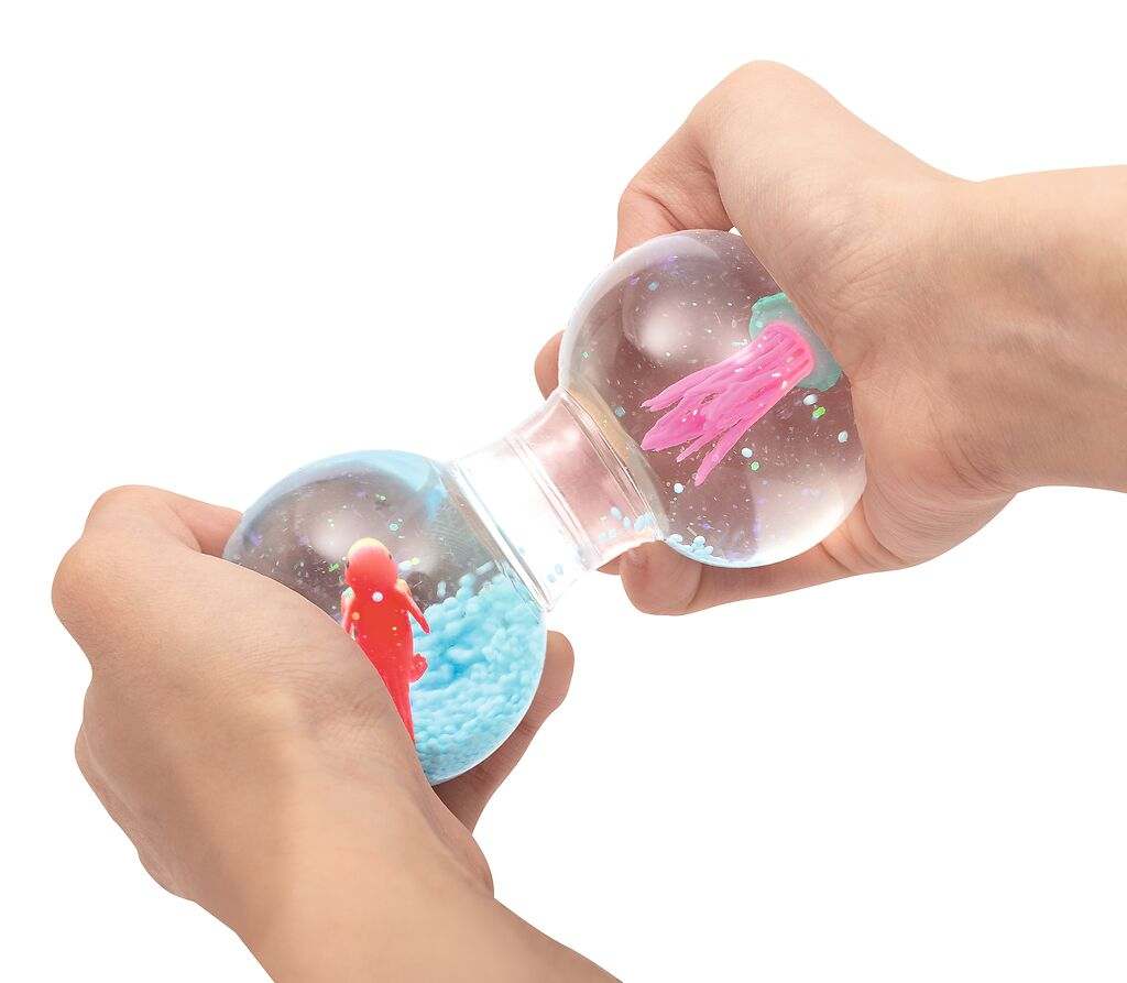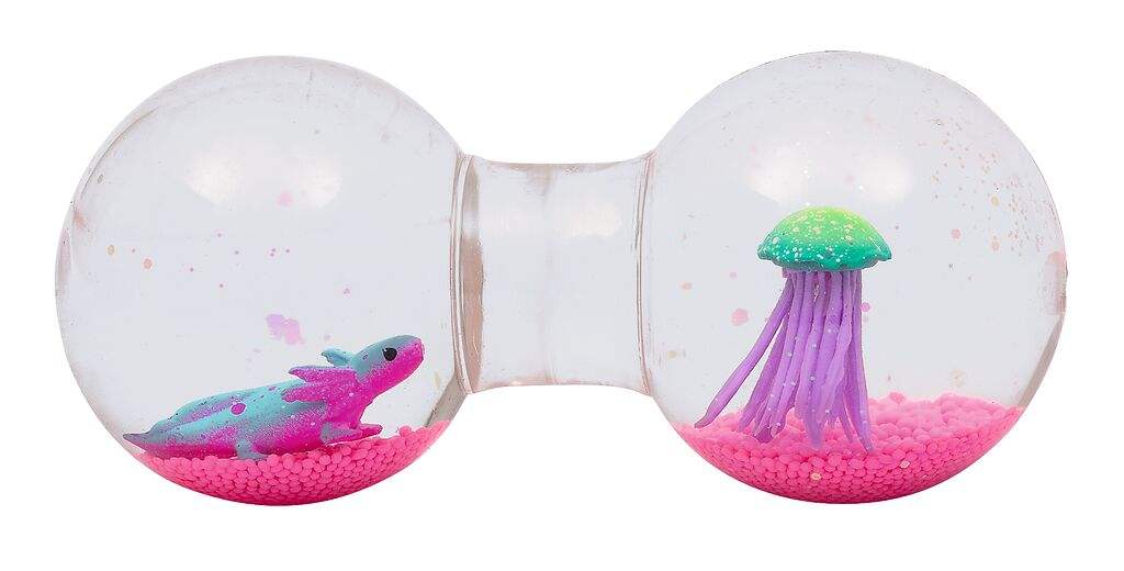 Bei jedem Drücken flitzen Axolotl oder Quallen lustig zwischen den beiden transparenten Enden hin und her.