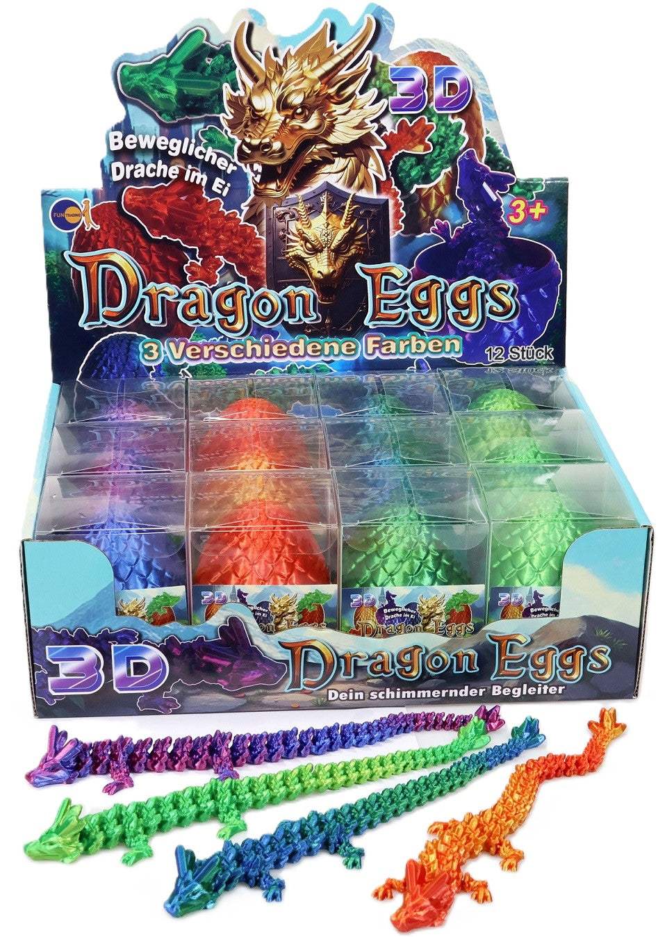Jedes der Eier enthält einen beweglichen 3D-Drachen in einer von vier tollen Farben.