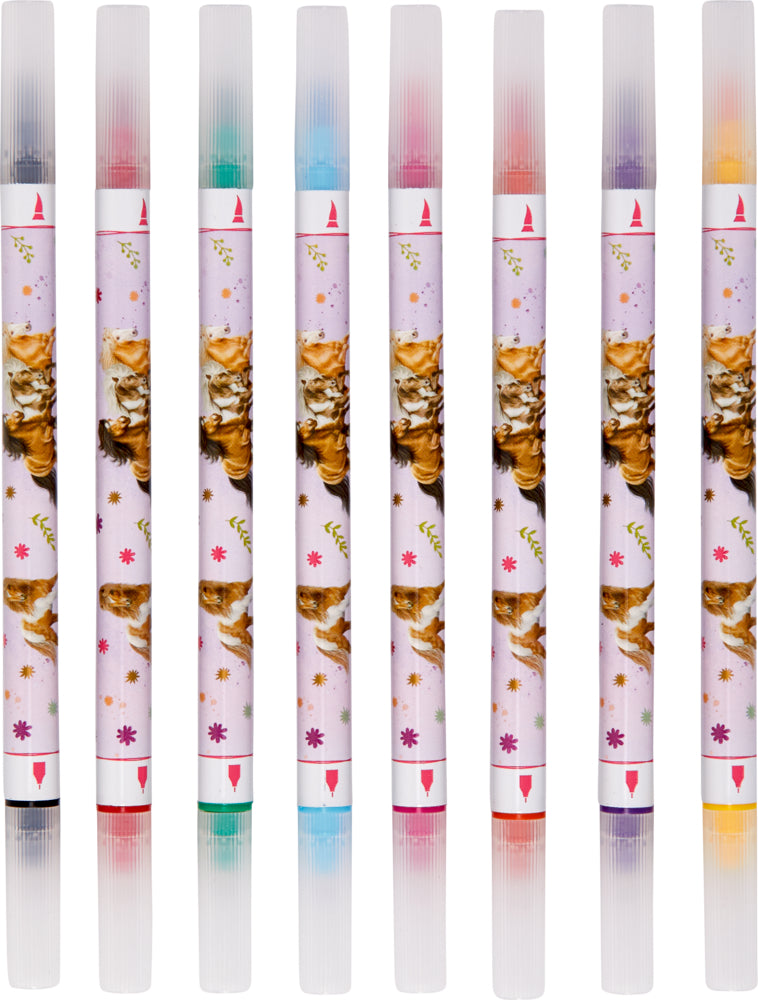 Handlettering für Anfänger und Profis: Mit diesem Set von Coppenrath aus 8 Doppelfasermalern mit zwei unterschiedlichen Spitzen (Pinselspitze und Fineliner-Spitze) erstrahlen Hausaufgabenhefte, Journals und Tagebücher in neuem Glanz. Mit zauberhaften Motiven für echte Pferdefreunde!