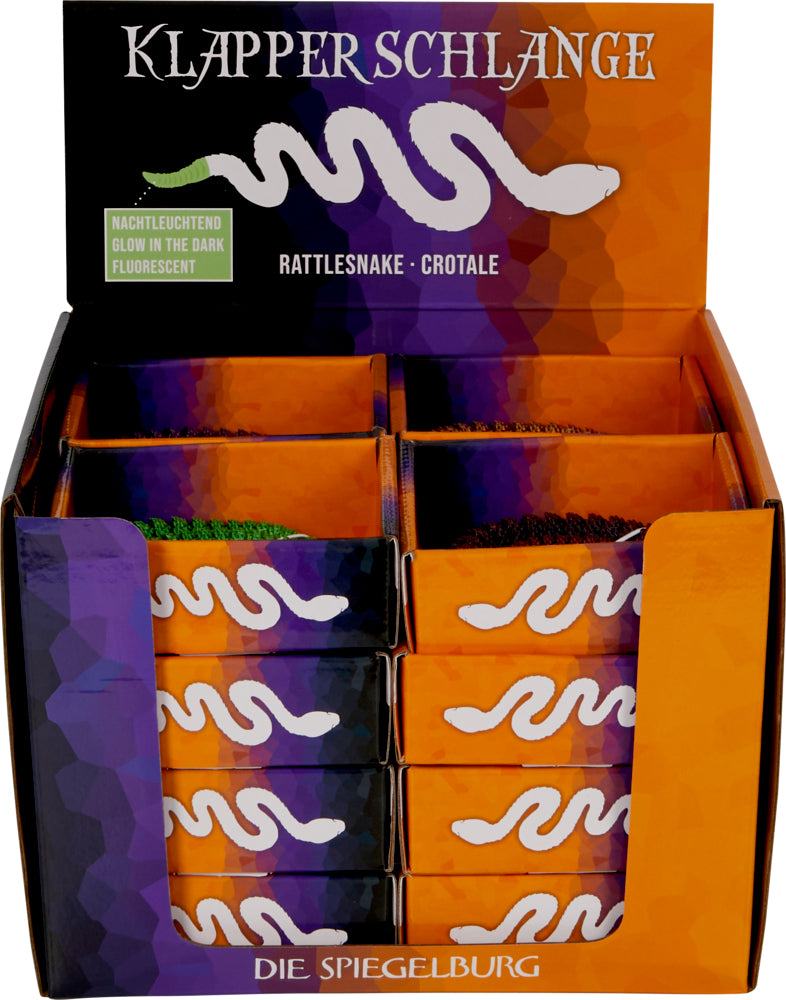 Die Verpackung der Klapperschlange misst 10,5 x 10,5 x 3,5 cm und schützt das Produkt optimal vor Beschädigungen.