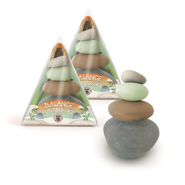 Finde Dein inneres Gleichgewicht! Das Anordnen dieser vier Radierer in Form von Zen-Steinen kann als meditative Handlung selbst dienen und hilft dabei, den Geist zu beruhigen und innere Ruhe zu finden. Platziere sie in der Wohnung oder auf dem Schreibtisch; ein tolles Deko-Element von Trendhaus mit dem man gleichzeitig auch Radieren kann.