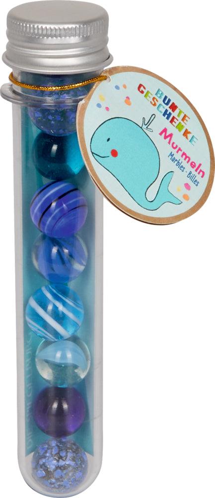 Maße: Murmeln: Ø ca. 1,6 cm, Reagenzglas: ca. 14,5 cm, Ø ca. 3 cm