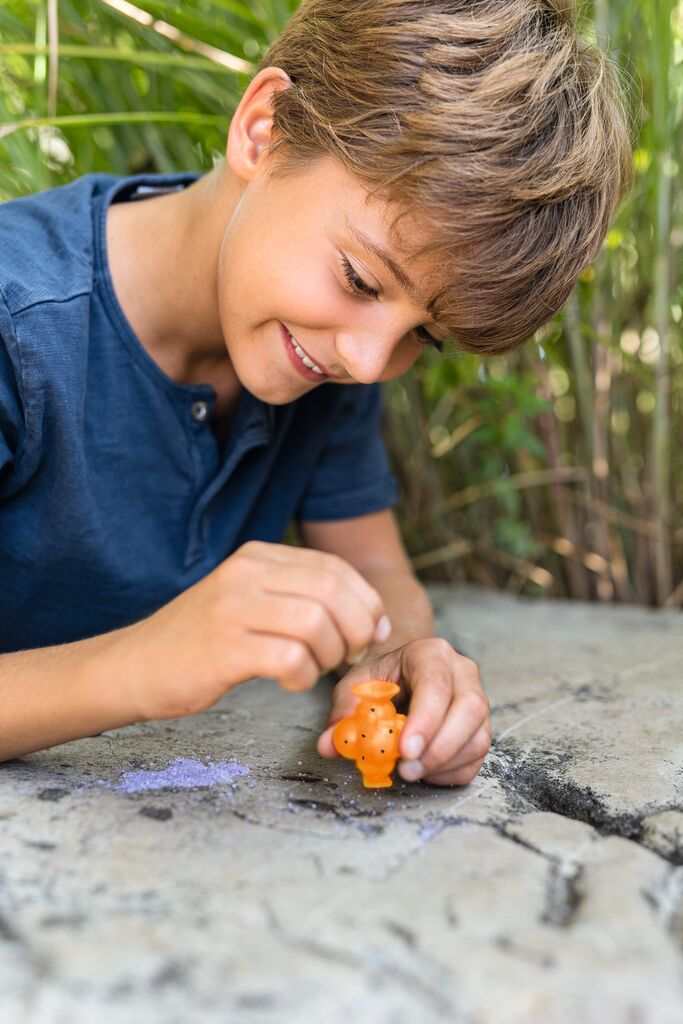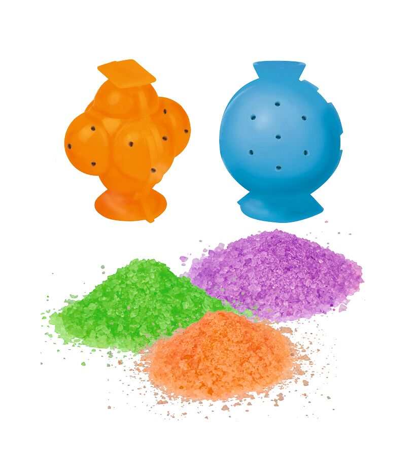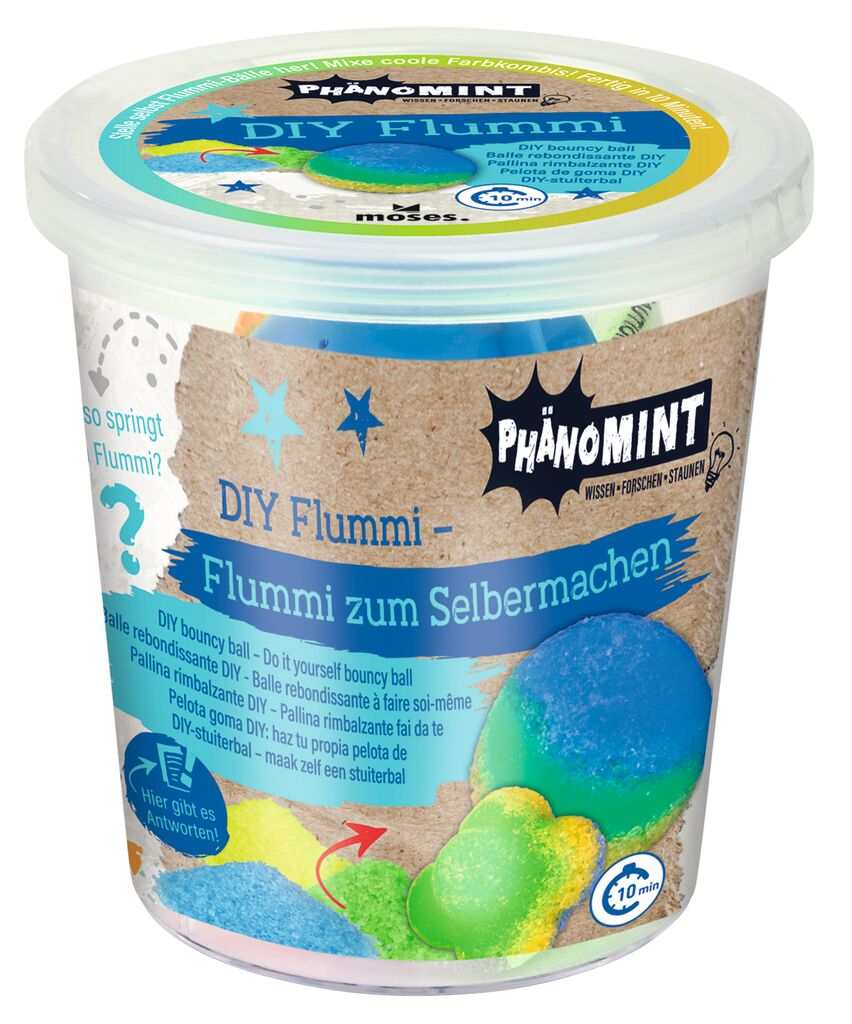 Einen Flummi selber machen? Dieses Set macht’s möglich! Einfach das Granulat in die Form streuen, das Ganze ins Wasser legen, danach öffnen und schon kann der Hüpfspaß mit dem Flummi beginnen. Das DIY-Set zur Flummi-Herstellung enthält drei Granulatfarben für farbenfrohe Flummis sowie zwei verschiedene Formen. Auf den beiliegenden spannenden Informationen lernen Kinder, wie aus Granulat und Wasser durch Adhäsion ein Flummi entstehen kann. Cooler Spielspaß und Lernen gehen hier Hand in Hand!