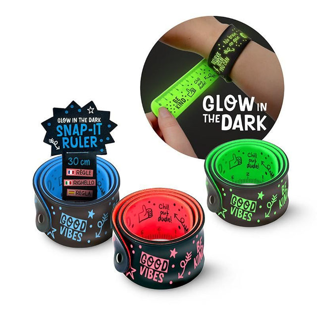 Ein stylisches Snap-Armband und Lineal in einem – und das Beste: Es leuchtet cool im Dunkeln!
