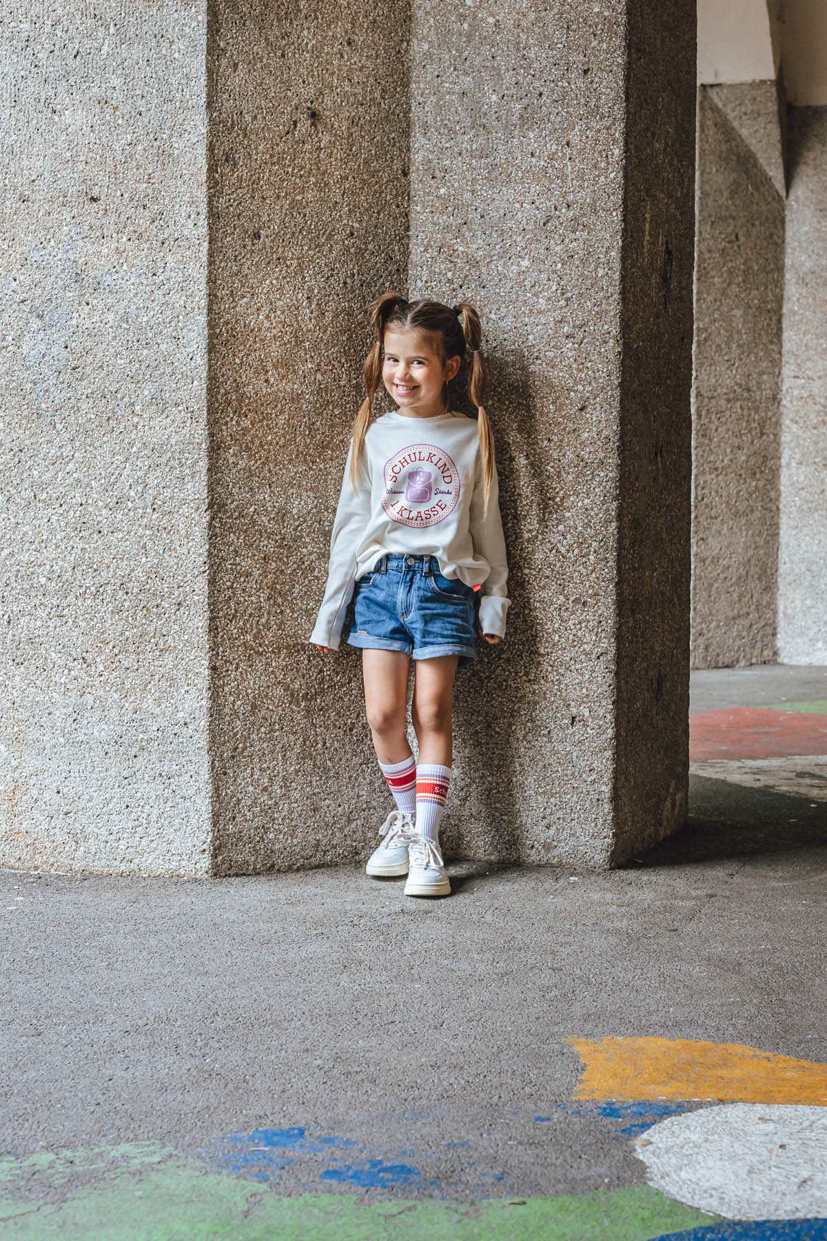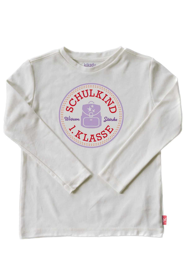 Das schlichte Langarmshirt von kikadu mit der Aufschrift „Schulkind“ wird dein Kind voller Stolz zum Schulstart oder im Schulalltag begleiten.