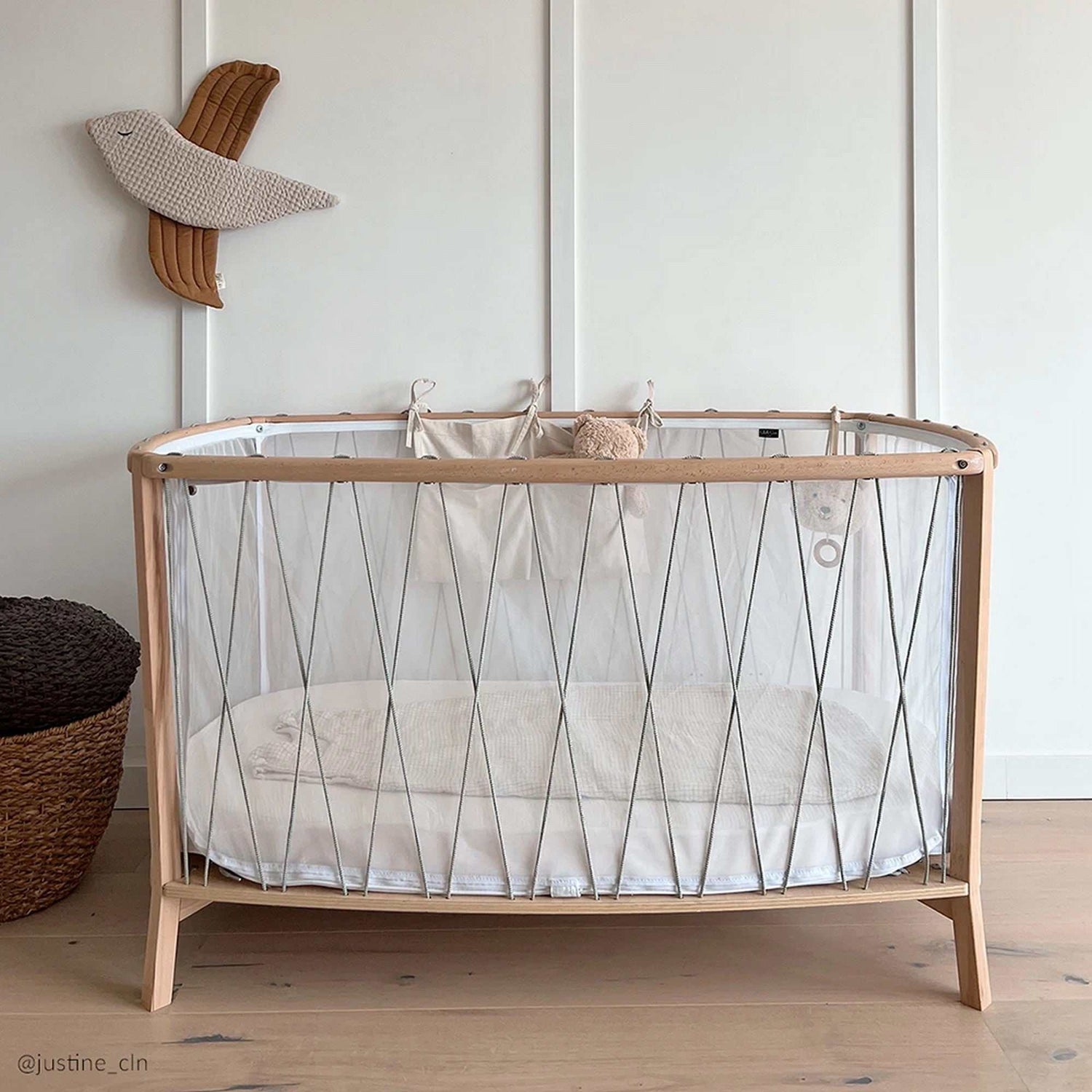 Mit seinen Maßen von 120x60 cm bietet es ausreichend Platz für Ihr Baby und unterscheidet sich deutlich von herkömmlichen Gitterbetten. Das runde und transparente Design des Bettes erinnert an einen beruhigenden Kokon, der es dem Baby ermöglicht, seine Umgebung zu erkunden.