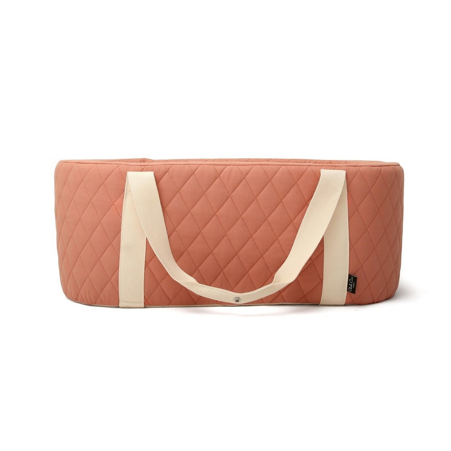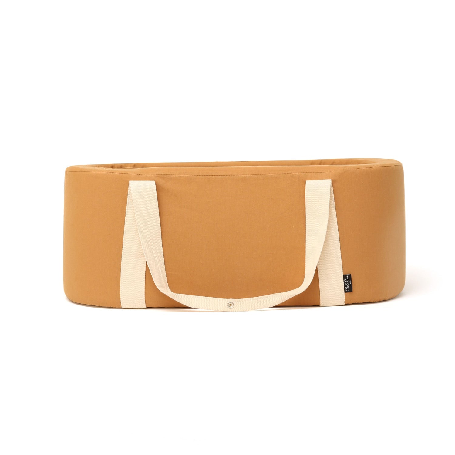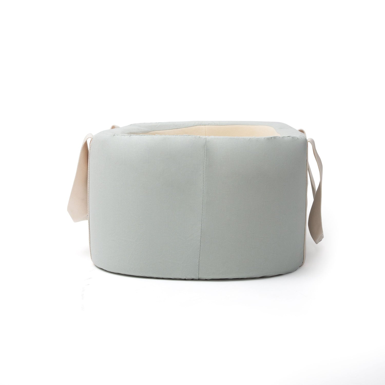 Die KUKO-Tragetasche von Charlie Crane ist aus Schaumstoff und Bio-Baumwolle gefertigt und verfügt über Griffe sowie ein Gestell aus Naturholz.