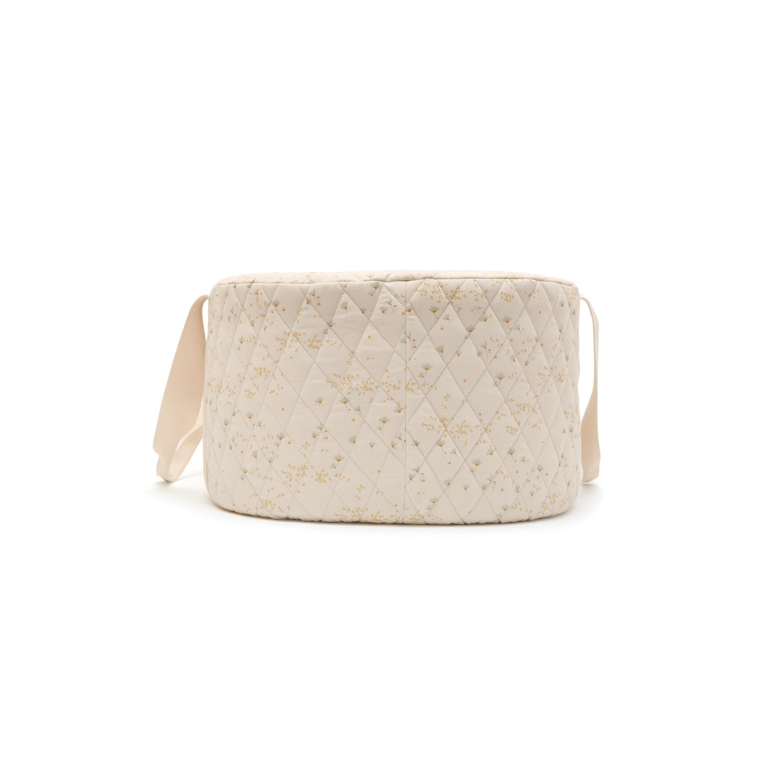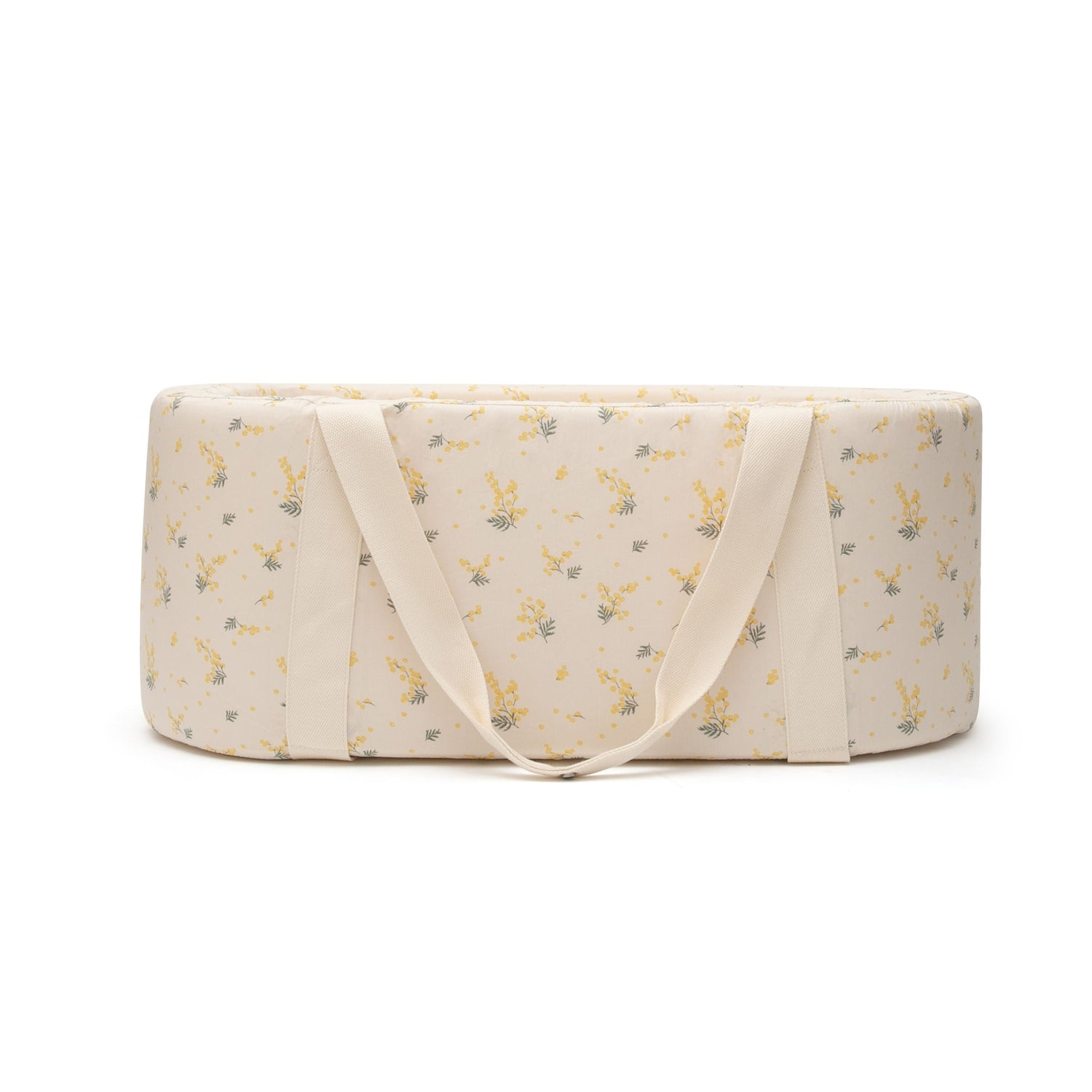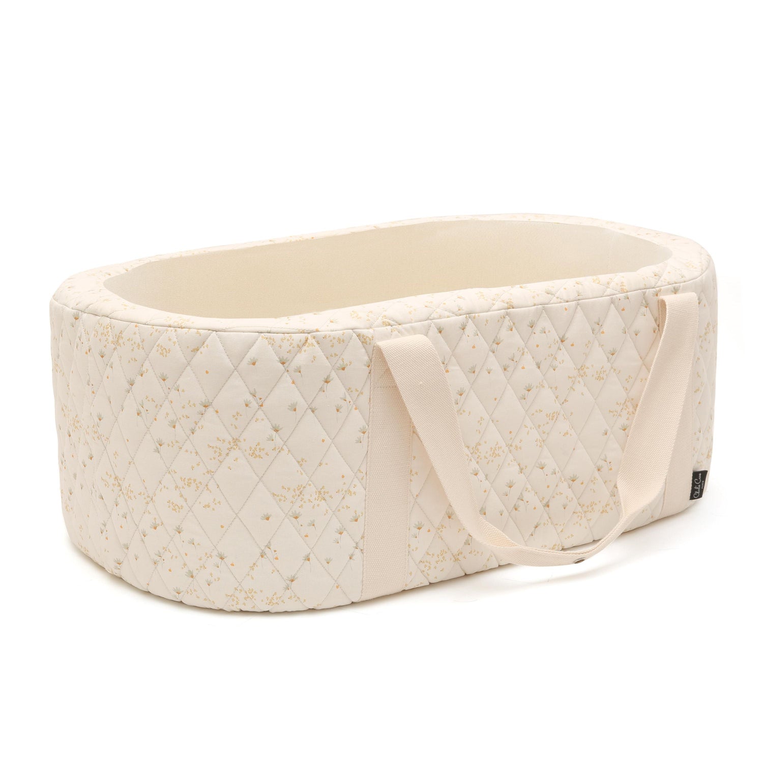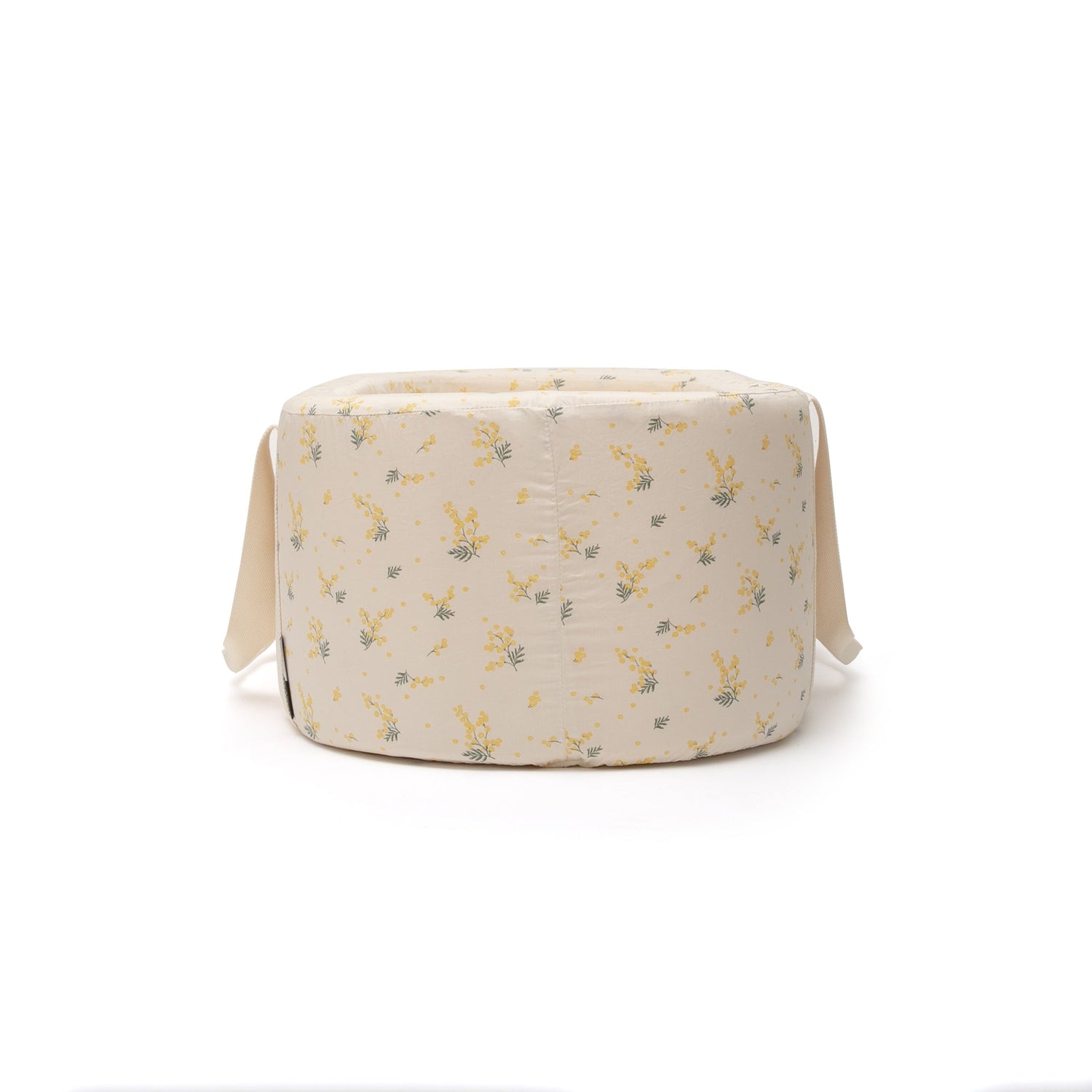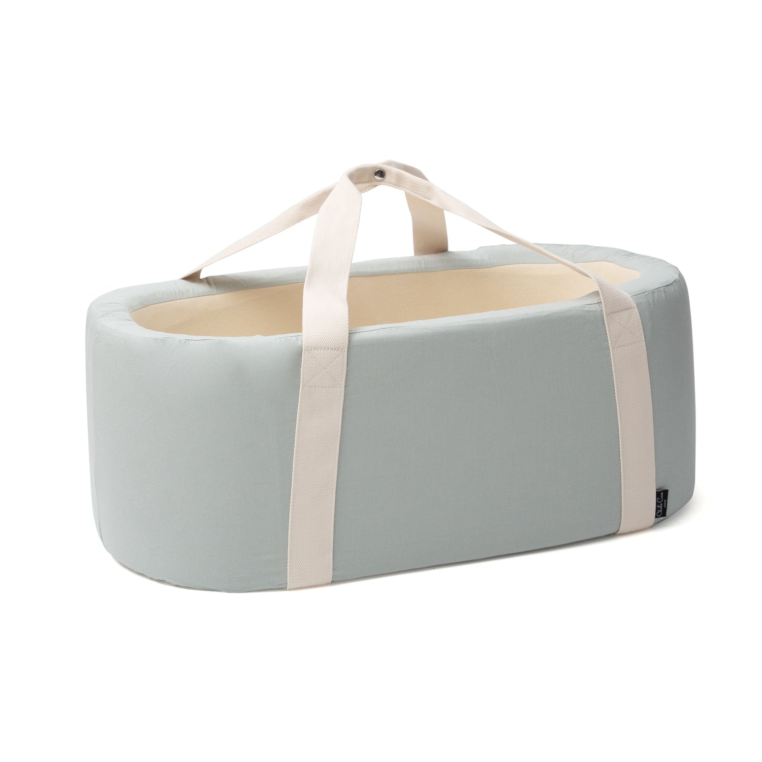 Der Bezug der Babywanne besteht zu 100% aus Bio-Baumwolle und ist bei 30 Grad waschbar, jedoch nicht trocknergeeignet.