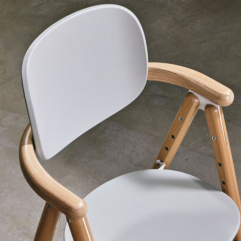 Dank der 3 verschiedenen Sitzhöhen und 4 Trittstufenpositionen kann der Stuhl immer wieder neu an die Größe des Kindes angepasst werden. Somit bietet er stets optimalen Halt und Komfort bei den Mahlzeiten.