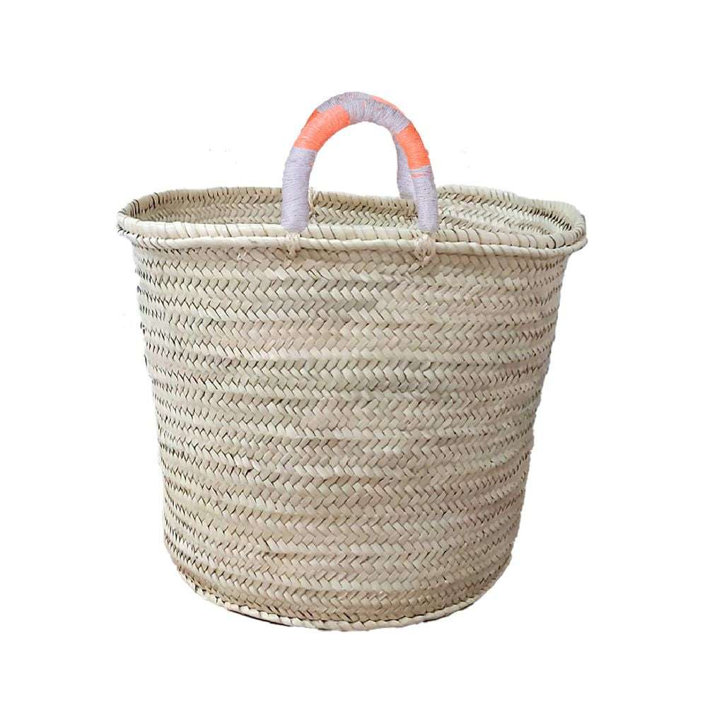 Die pinke Farbe verleiht dem Korb eine frische und natürliche Optik, die sich gut in verschiedene Einrichtungsstile einfügt.