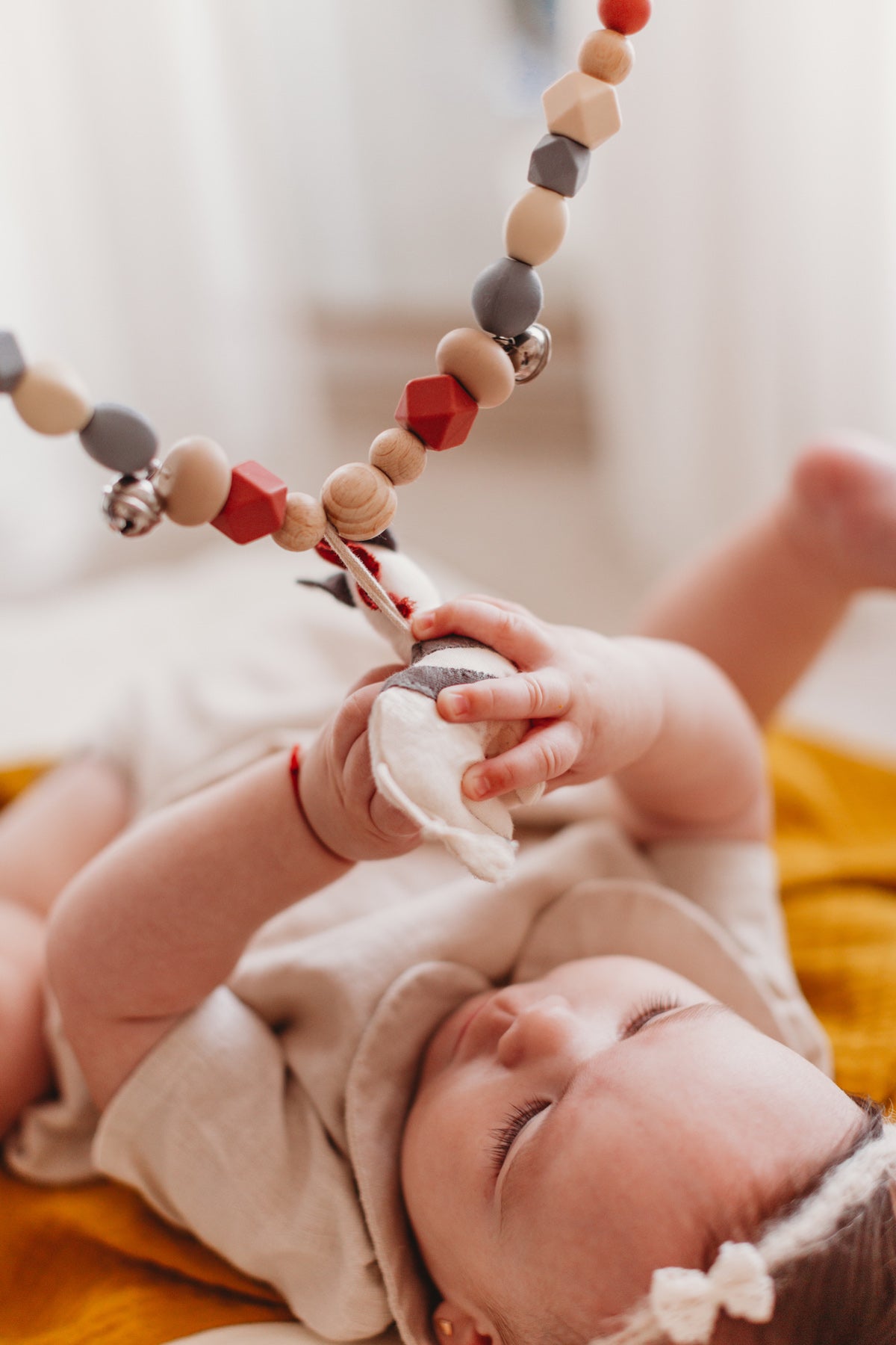 Die Kinderwagenketten von Kikadu bereitet deinem Kind durch ihr natürliches Design mit verspielten und bunten Details, wie den süßen Tierchen und Figürchen und den Holzperlen, viel Freude im Kinderwagen.
