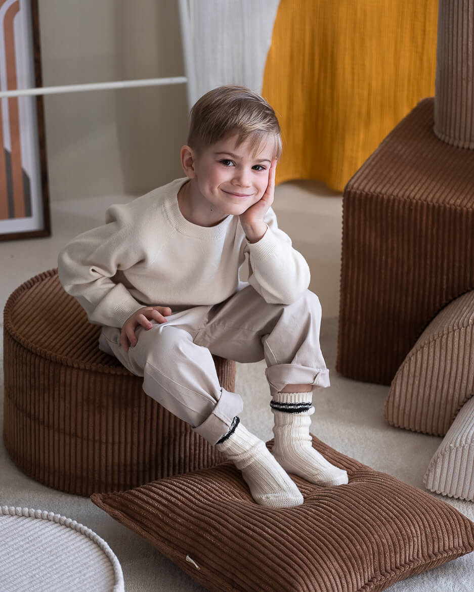 Mit seinem hochwertigen Cordbezug, der aus recycelten Materialien hergestellt wurde, ist es nicht nur eine Bereicherung für jedes Kinderzimmer, sondern auch ein Beitrag zum Umweltschutz.