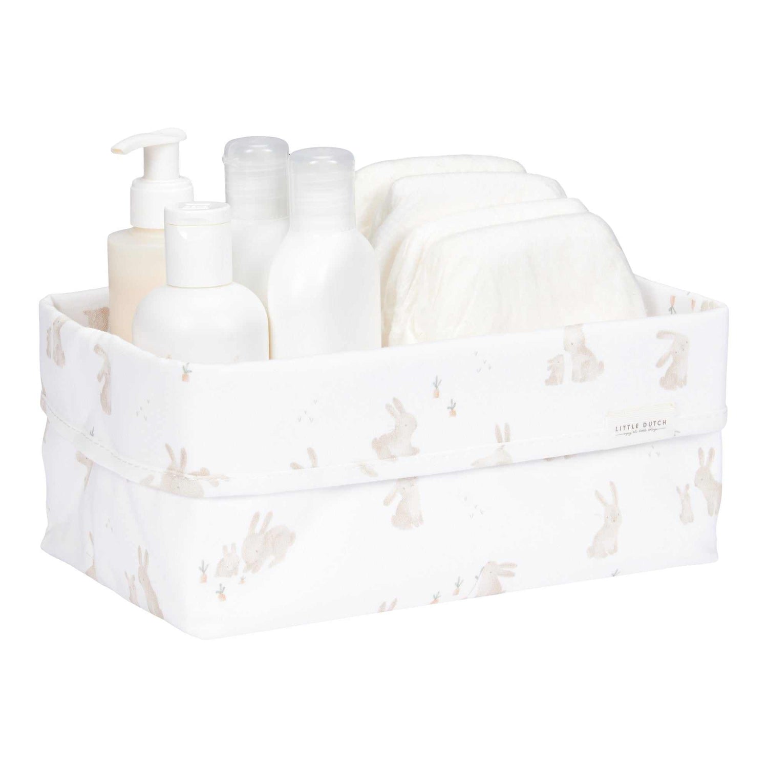 Mit diesem Pflegekörbchen von Little Dutch bleibt die Kommode ordentlich und aufgeräumt! Dieses Little Dutch Pflegekörbchen ist schön verarbeitet und bietet Platz für alle Produkte, die Sie für die tägliche Pflege Ihres Babys benötigen. Ein schönes Accessoire für das Kinderzimmer. Dieses Körbchen Baby Bunny ist mit einem schönen Hasenprint verziert. Auch in anderen Größen und Formen erhältlich.