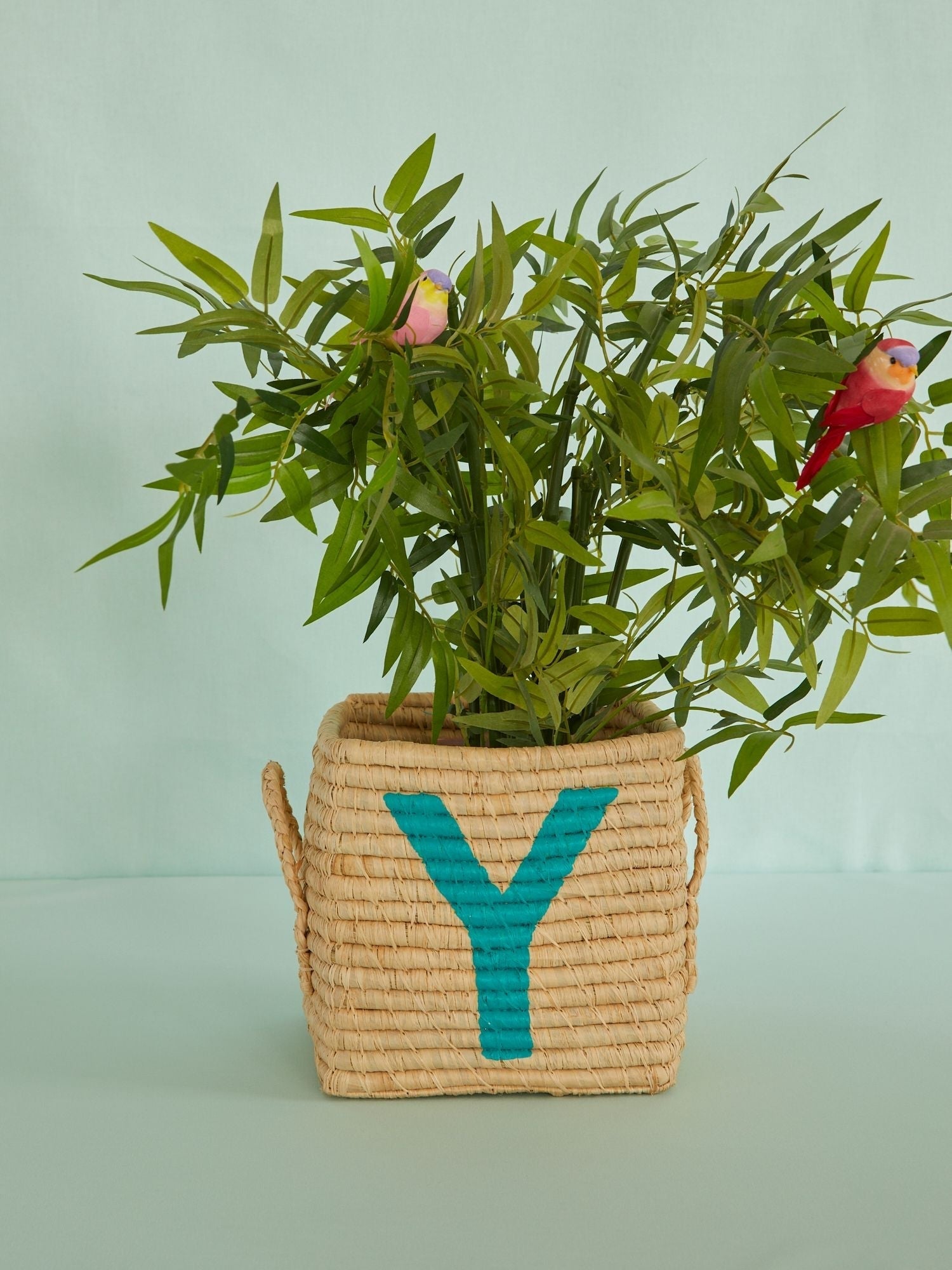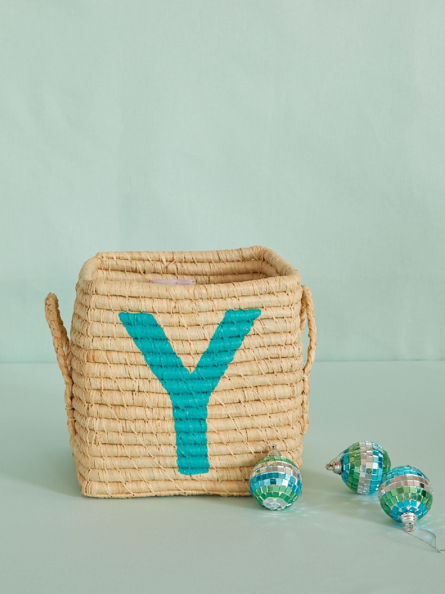 Raffia Square Basket with painted Letter Y
