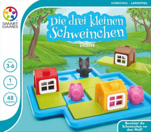 Das Spiel "Die drei kleinen Schweinchen" von SMARTGAMES basiert auf dem gleichnamigen Märchen und ist für Kinder im Alter von 3-6 Jahren konzipiert.