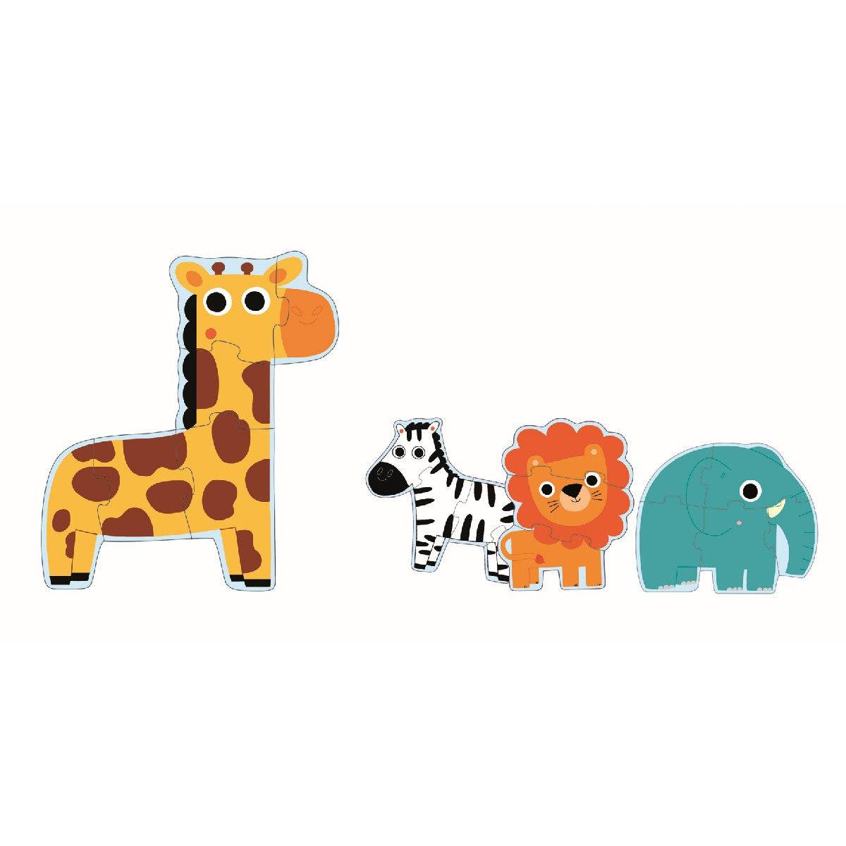 Mit diesen Puzzle können schon die allerkleinsten vier verschiedene Dschungeltiere Puzzlen.