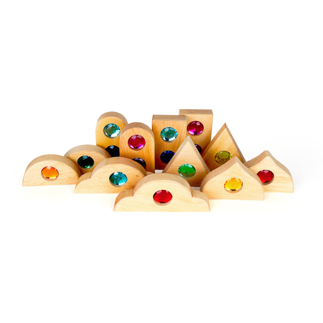 Die verschiedenen Formen der Funkeldächer ermöglichen es den Kindern, eine fantasievolle Welt aus Licht, Farben und funkelnden Elementen zu erschaffen. Dies fördert nicht nur die Kreativität, sondern auch das freie Bauen, Kombinieren und Entdecken. Die Bausteine eignen sich ideal für fantasievolles Spiel, Farb- und Lichterfahrungen, freies Konstruieren oder als ästhetische Bereicherung für den Jahreszeitentisch.