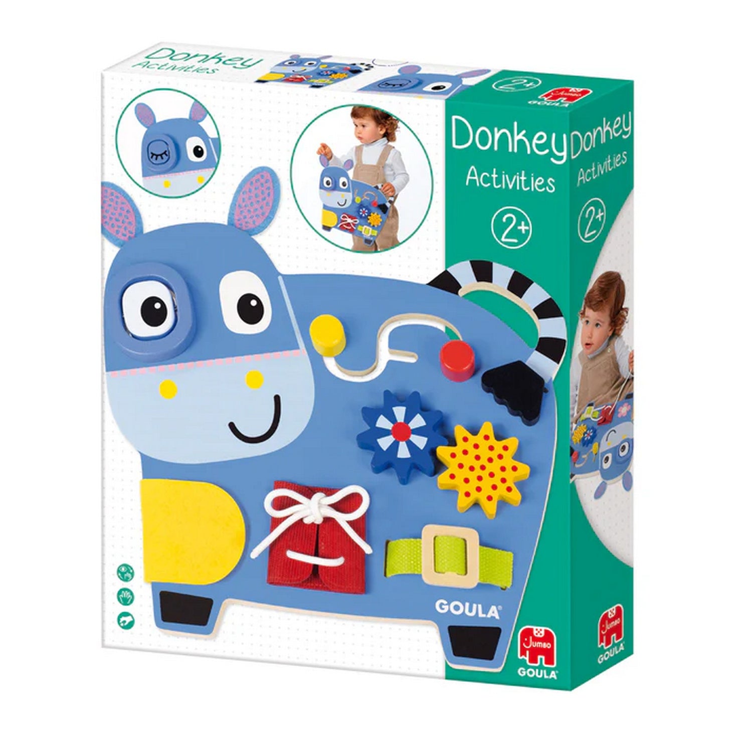 Dieses Holz-Aktivitäten- Brett von Jumbo Spiele wurde entwickelt, um verschiedene Fähigkeiten bei Kindern zu fördern und ist gleichzeitig tragbar, sodass Kinder überall damit spielen können.
