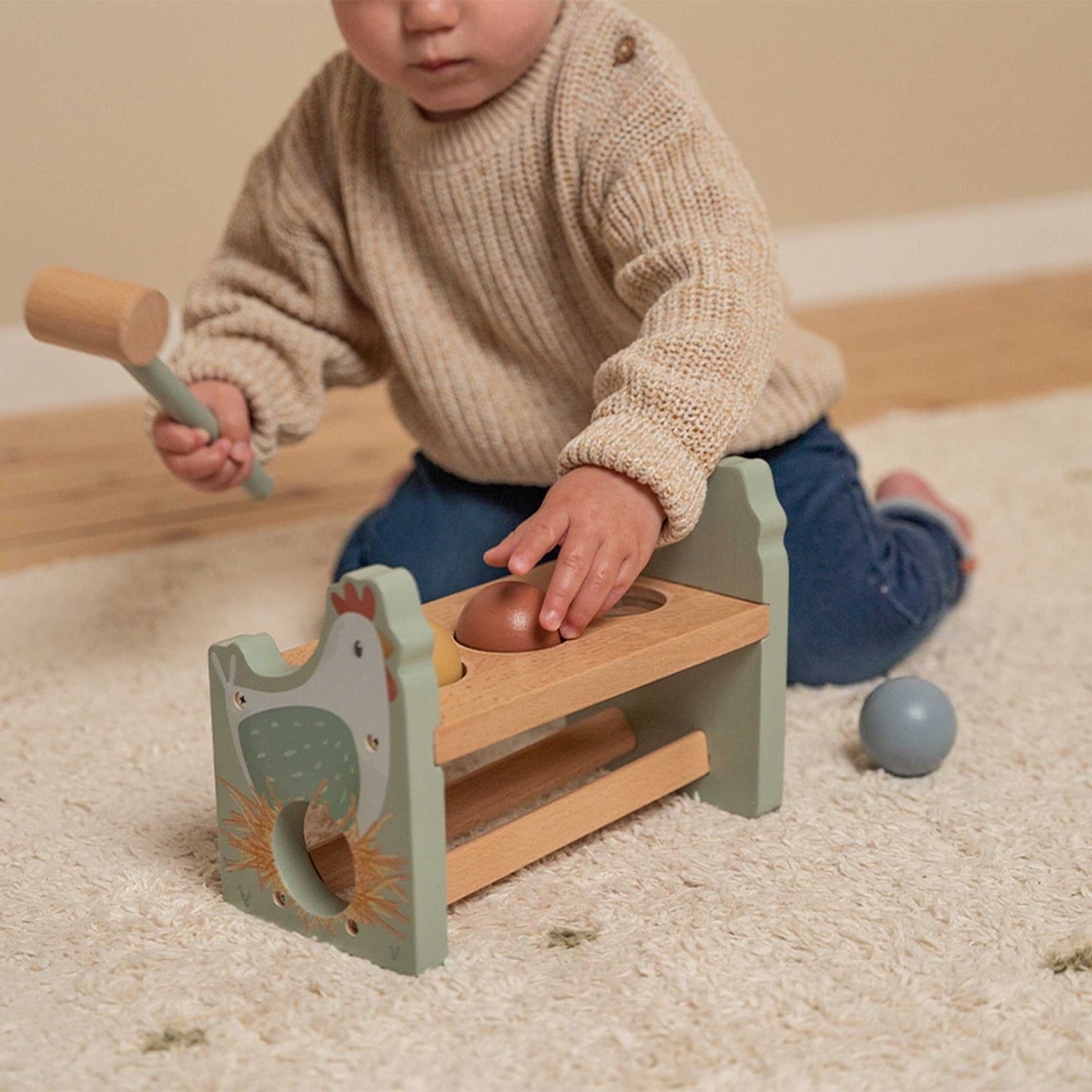Mit der Little Dutch Little Farm Hammerbank entwickelt ihr Kind auf spielerische Weise die Hand-Auge-Koordination.