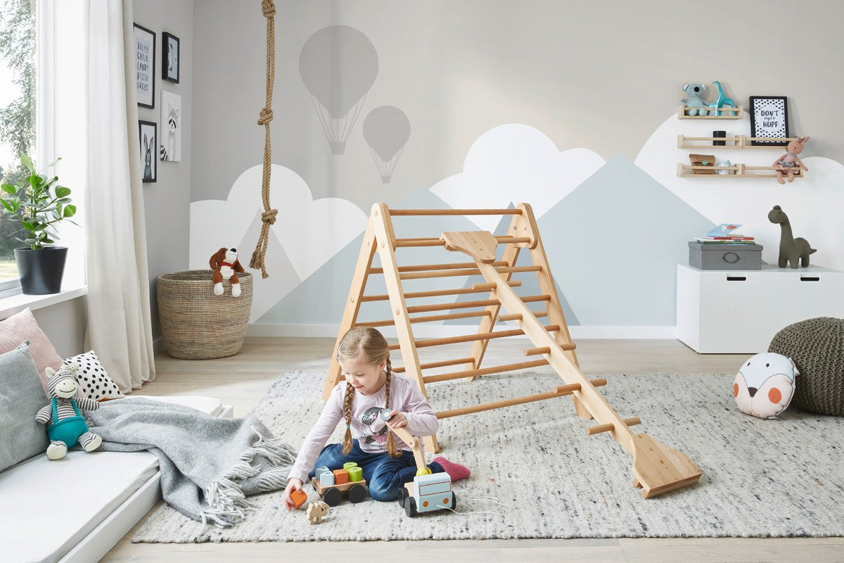 Mit diesem Kletterdreieck kann Ihr Kind jederzeit seinen Bewegsungsdrang ausleben und gleichzeitig die Motorik und die Bewegungssicherheit trainieren.