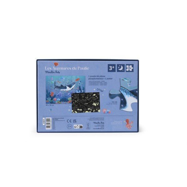 Tauchen Sie ein, in die zauberhafte Unterwasserwelt mit dem Puzzle "DAS MEER" von Moulin Roty. Das nachtleuchtende Puzzle besteht aus 24Teilen.