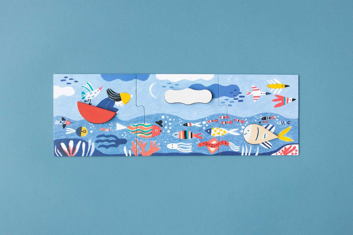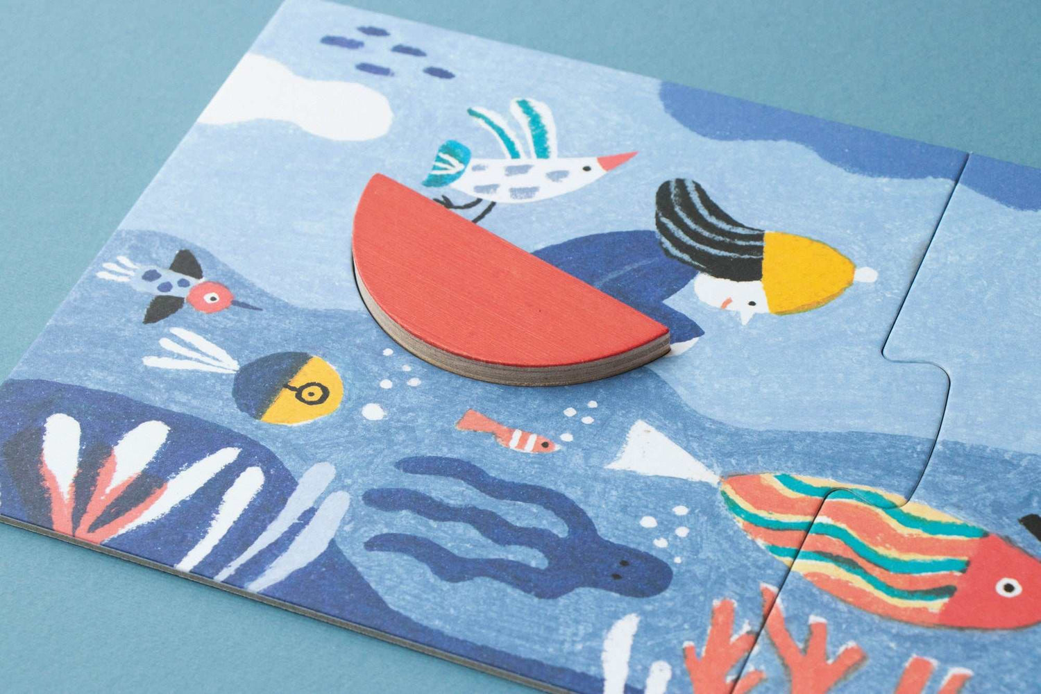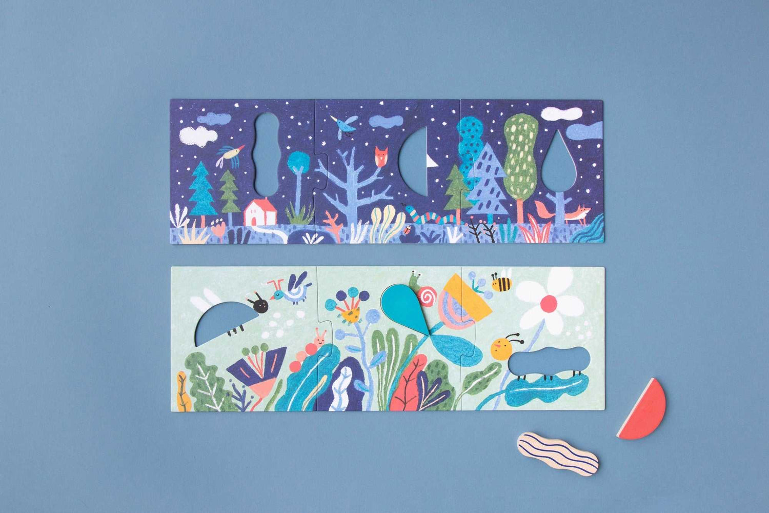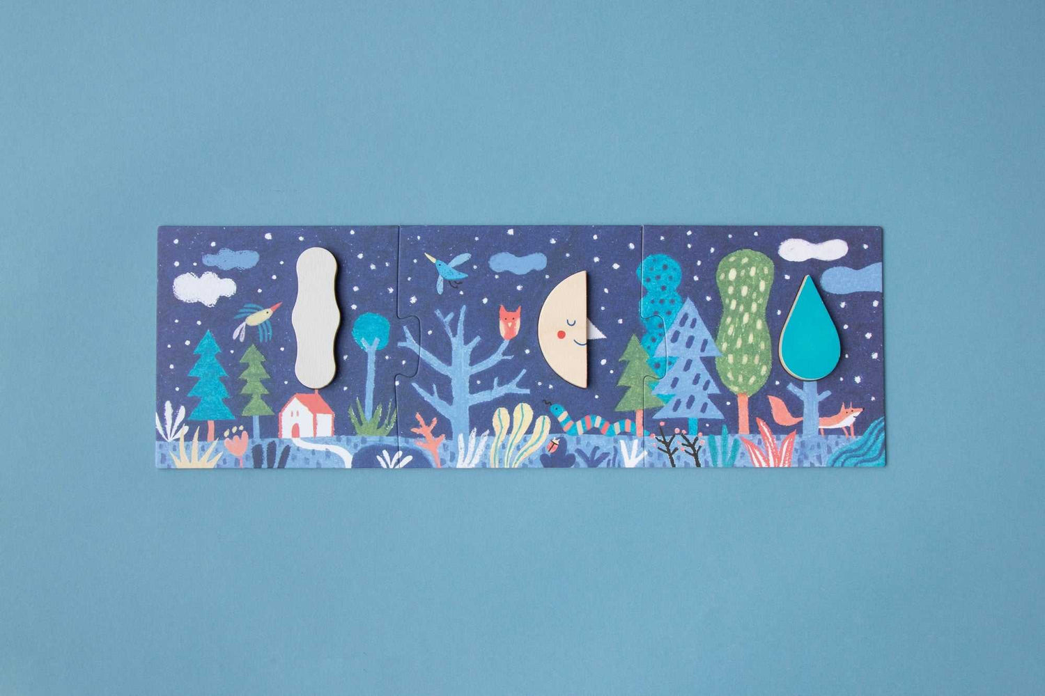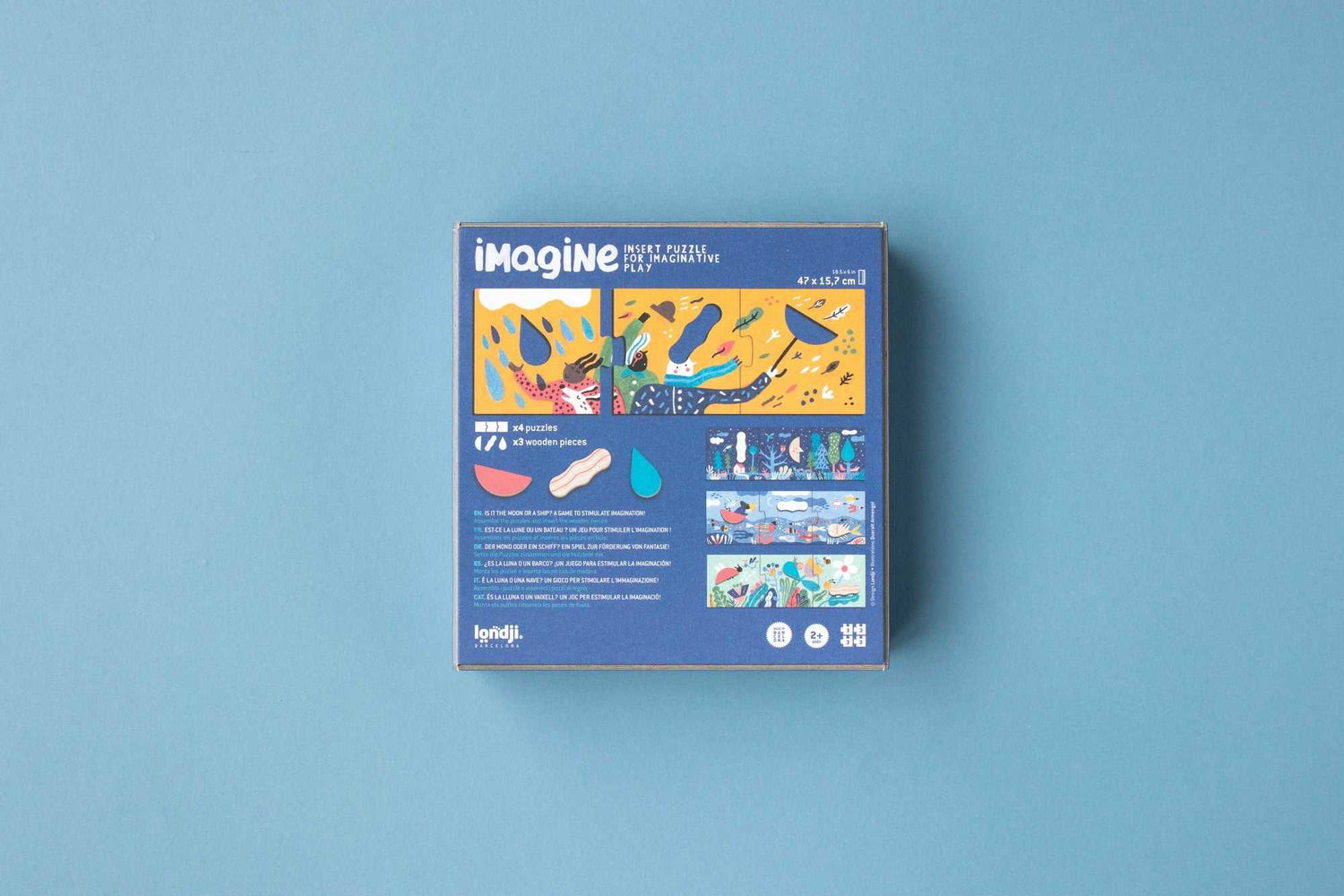 Für die Kleinsten ist dieses wunderschöne Puzzle Imagine von Londji bestens geeignet. Die liebevoll illustrierte Verpackung ist Teil des Spiels, mit dieser und weiteren großen Puzzlestücken, sowie Holzstücken, die unterschiedlich eingesetzt werden, können fabelhafte Welten erschaffen werden.