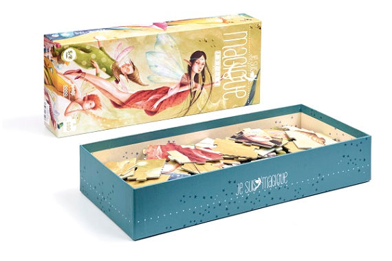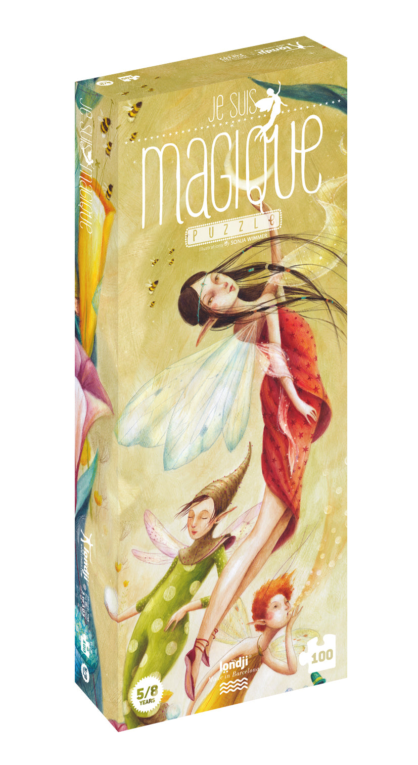 Zauberhaft illustriertes Puzzle 'Je suis Magique' von Londji. Beim Zusammensetzen der 100 Einzelteile, erscheinen wunderschönen Feen und Elfen in einer magischen Welt. Das Puzzle ist eine tolle Beschäftigung für Kinder ab 5 Jahren - es bereitet viel Freude und Spaß und fördert nicht nur die Motorik und Konzentration, sondern auch den Blick für Details. Es lässt die Kinder in ihre wunderschöne Fantasiewelt eintauchen. In der stabilen Box lässt sich das Puzzle wunderbar verstauen und transportieren. Made in Barcelona. CE-zertifizert nach EU-Standard EN71.