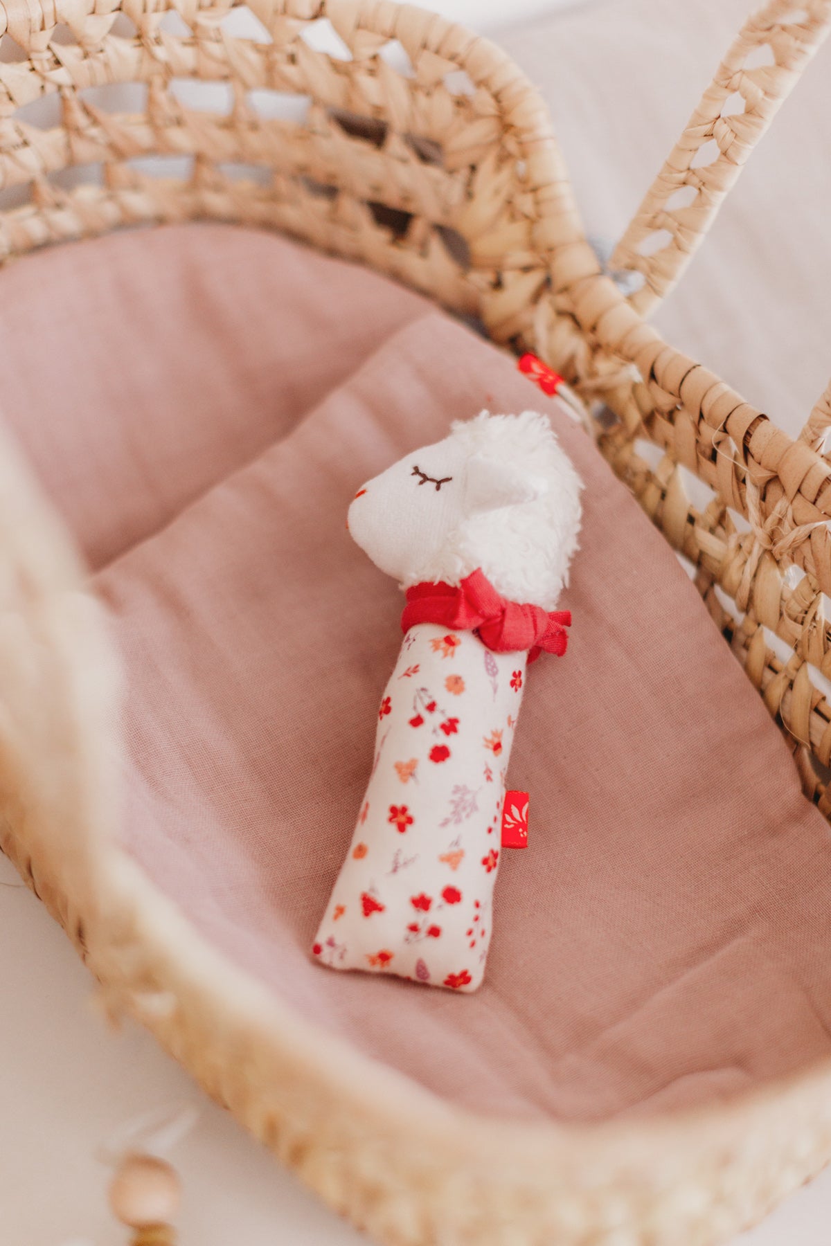 Dieses kleine Lämmchen von Kikadu will gedrückt werden! Der Quietscher, im süßen Lämmchen Design, bereitet deinem kleinen Schatz viel Spaß und Unterhaltung. Er fördert das haptische Entdecken und regt die Sinne an. Durch sein geringes Gewicht und die schmale Form kann er ganz einfach von den kleinen Händen gehalten werden. Er ist auch ein ideales Geschenk zur Geburt. Modell: 2215301 Pflege: Sauber wischen Altersempfehlung: 3 Monate Material: 100% Biobaumwolle