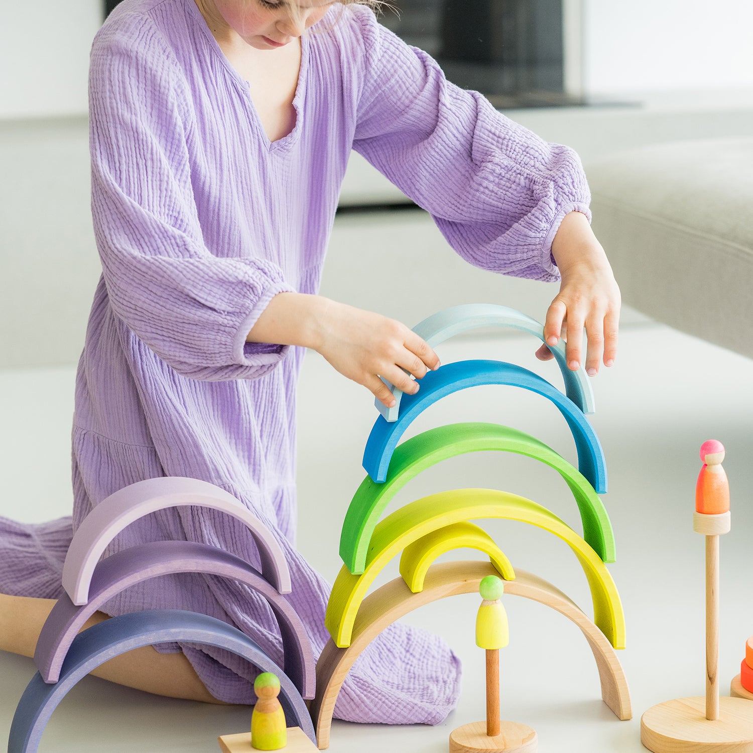 Die hochwertige Verarbeitung und die sorgfältig ausgewählten Farben machen diesen Regenbogen zu einem zeitlosen und langlebigen Spielzeug, das sowohl Kinder als auch Erwachsene gleichermaßen begeistert.
