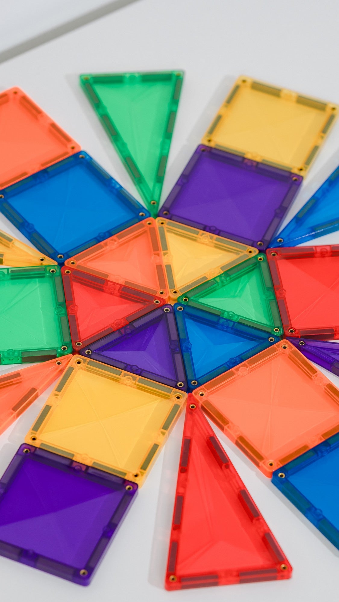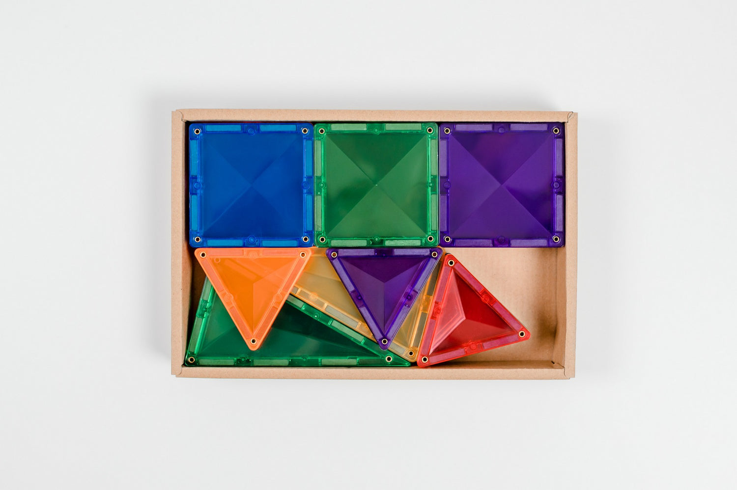 Dieses Paket mit einer Auswahl an Formen in allen Regenbogenfarben wurde zusammengestellt, um Ihnen das Spiel mit magnetischen Spielsteinen und Connetix näher zu bringen.