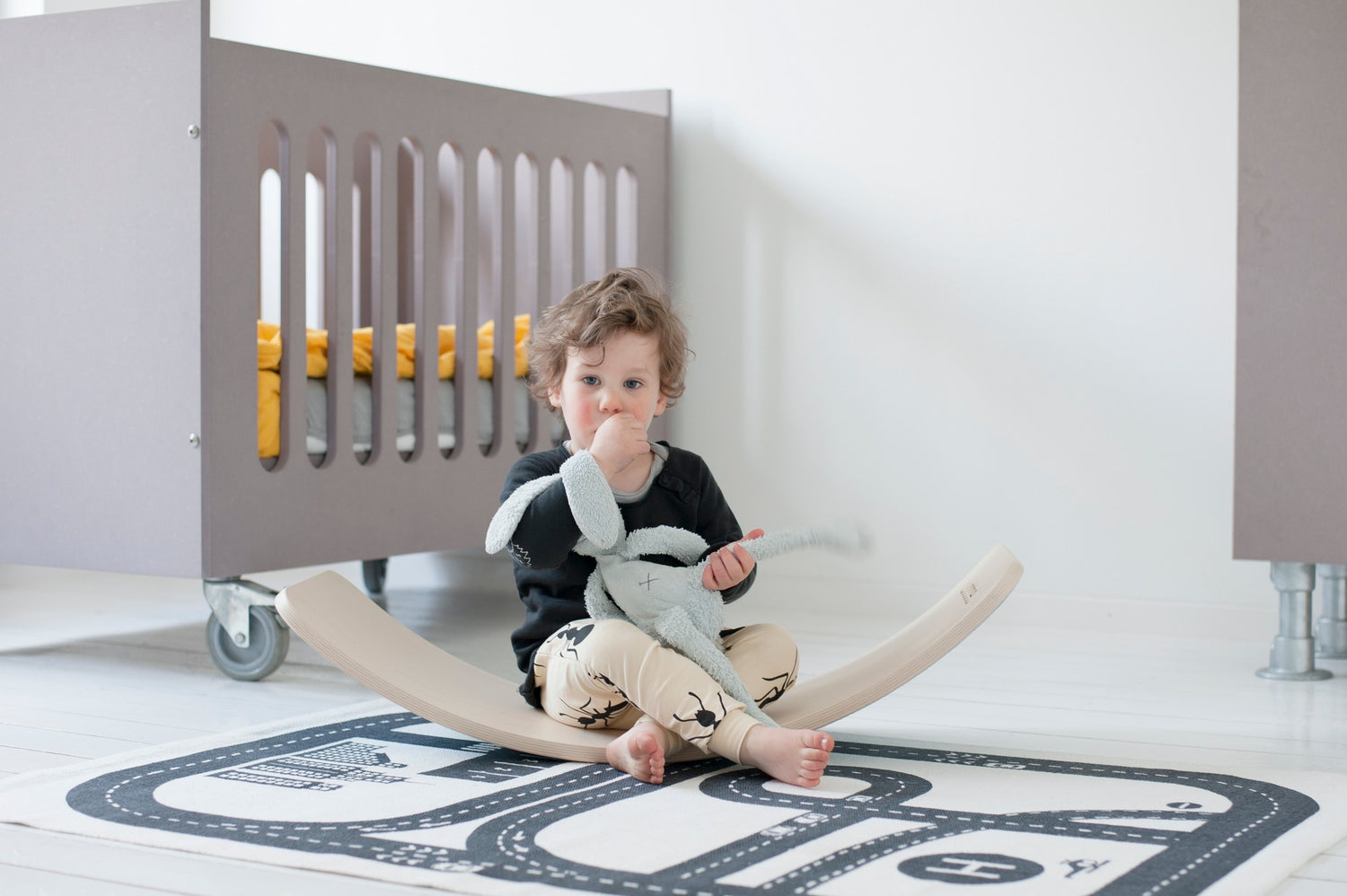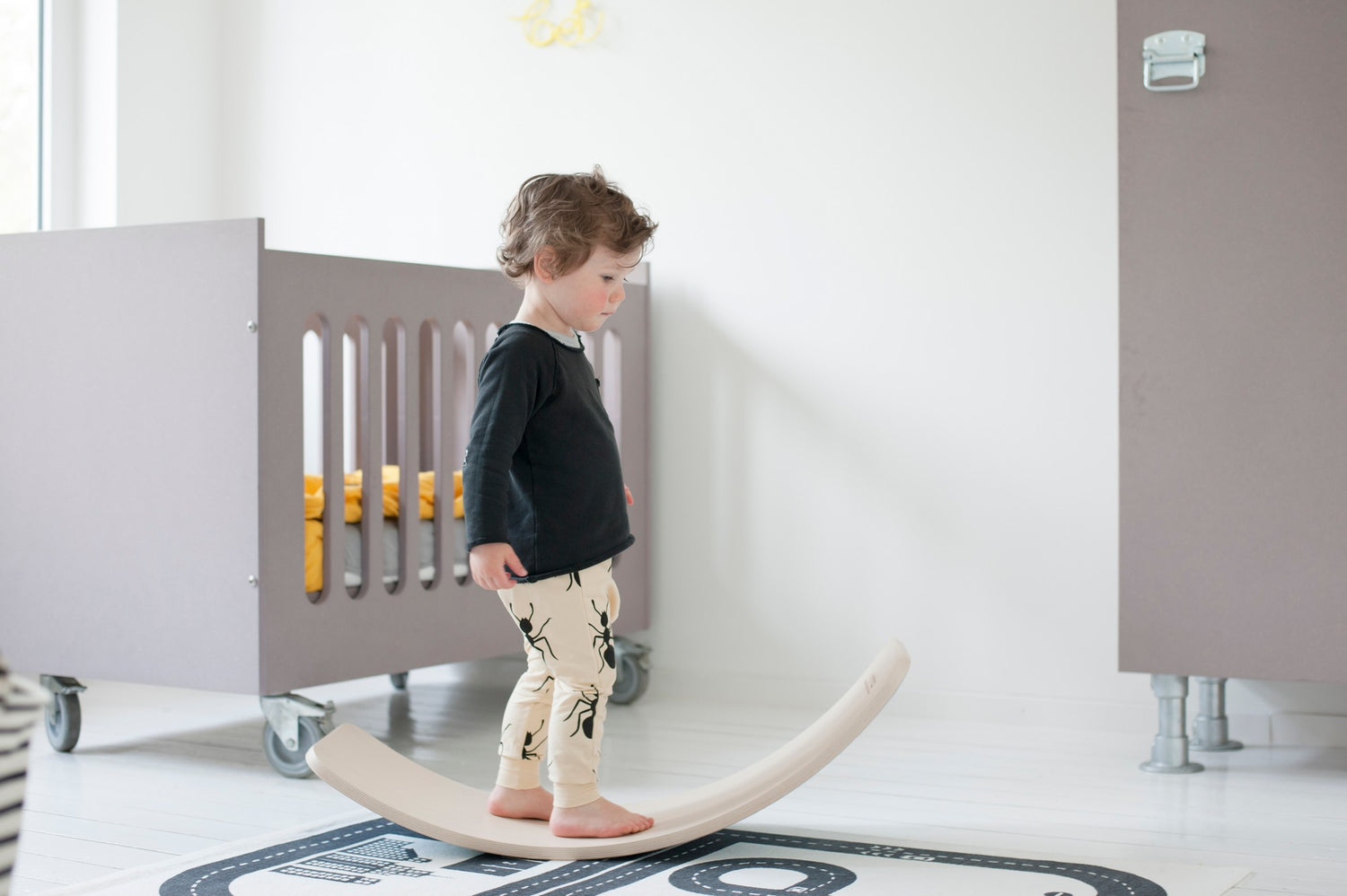 Das Balance Board von Wobbel, ist heute eine Wippe, morgen eine Schaukel oder eine Brücke und dann eine Rennbahn.