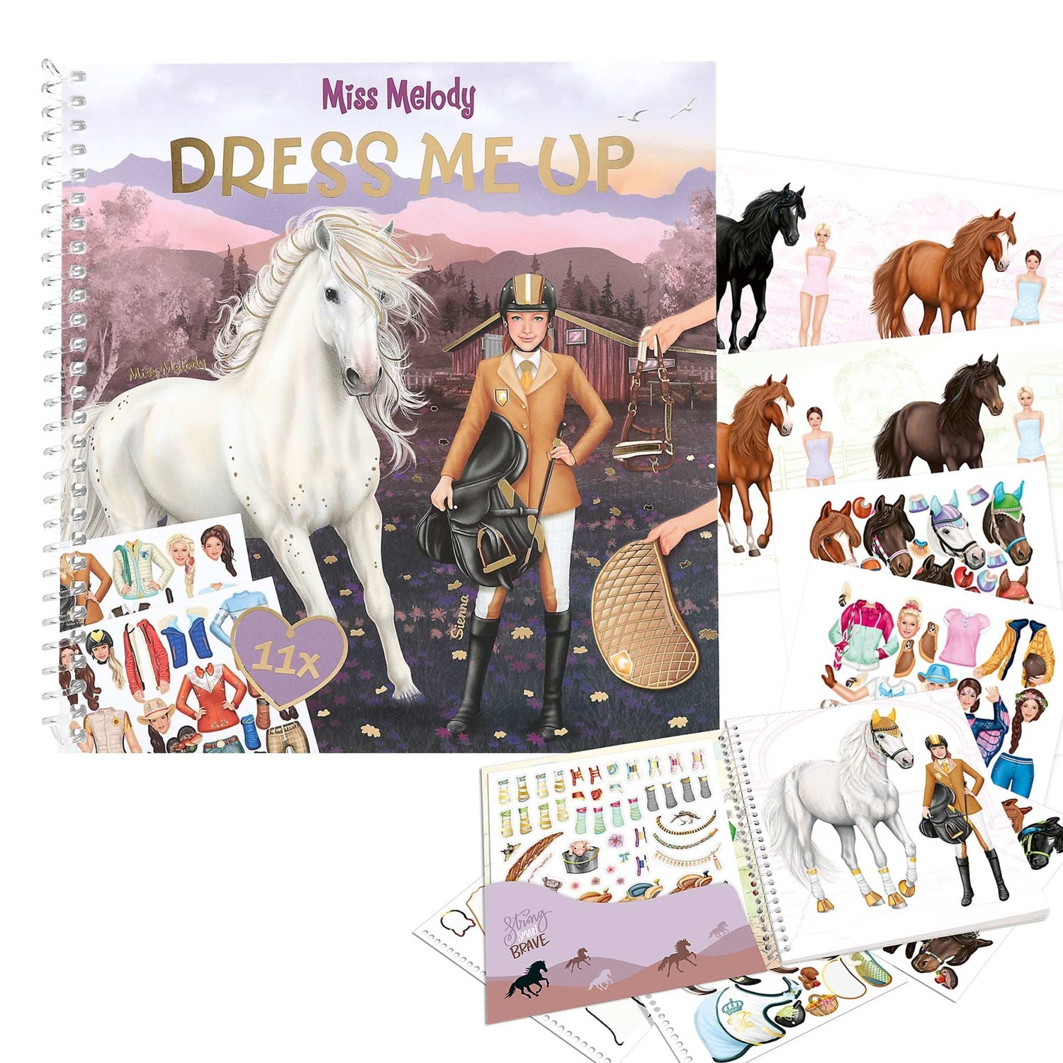 Superschöne Reit-Outfits und alles, was das Pferdeherz begehrt: Im Sticker- und Malbuch Dress Me Up von Miss Melody kann man mit 11 Stickerbögen auf 24 Seiten tolle Looks für Reiterinnen und ihre Huf-Freunde zusammenstellen.