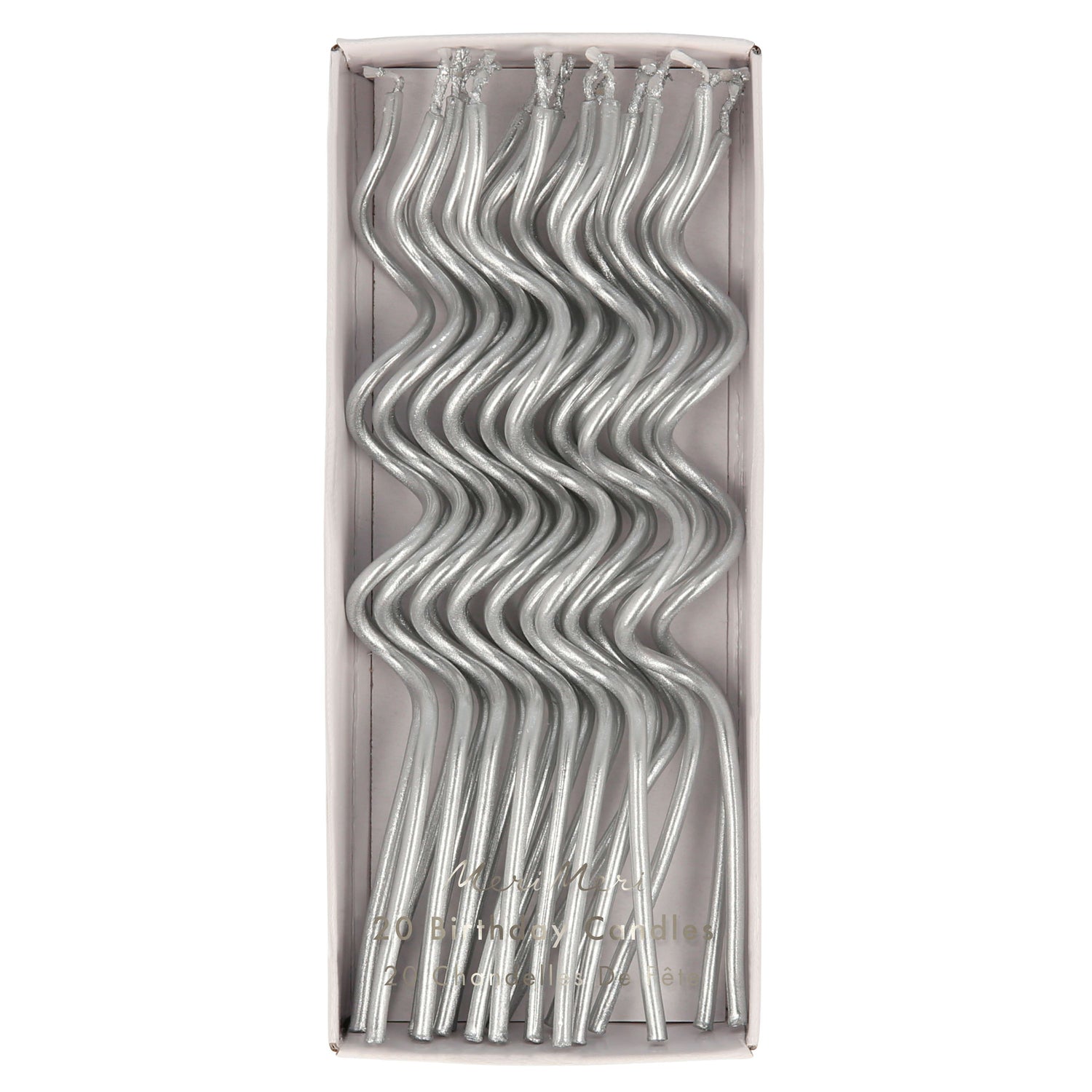 Diese geschwungenen Kerzen von Meri Meri in glänzendem Silber verleihen jeder festlichen Torte einen sensationellen Effekt. Sie sehen wunderschön aus und erfreuen garantiert alle Partygäste.