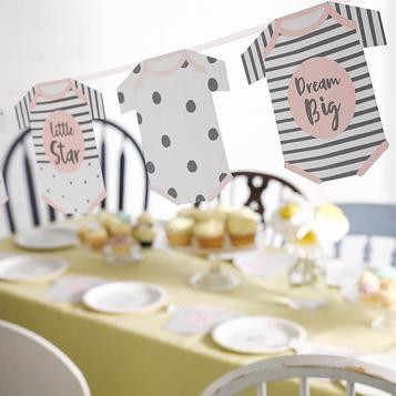 Diese beidseitig verwendbare Girlande von Talking Tables, ist die perfekte Ergänzung für eine Babyparty. Die niedliche Strampler Form und den rosafarbenen Besatz werden Sie lieben.