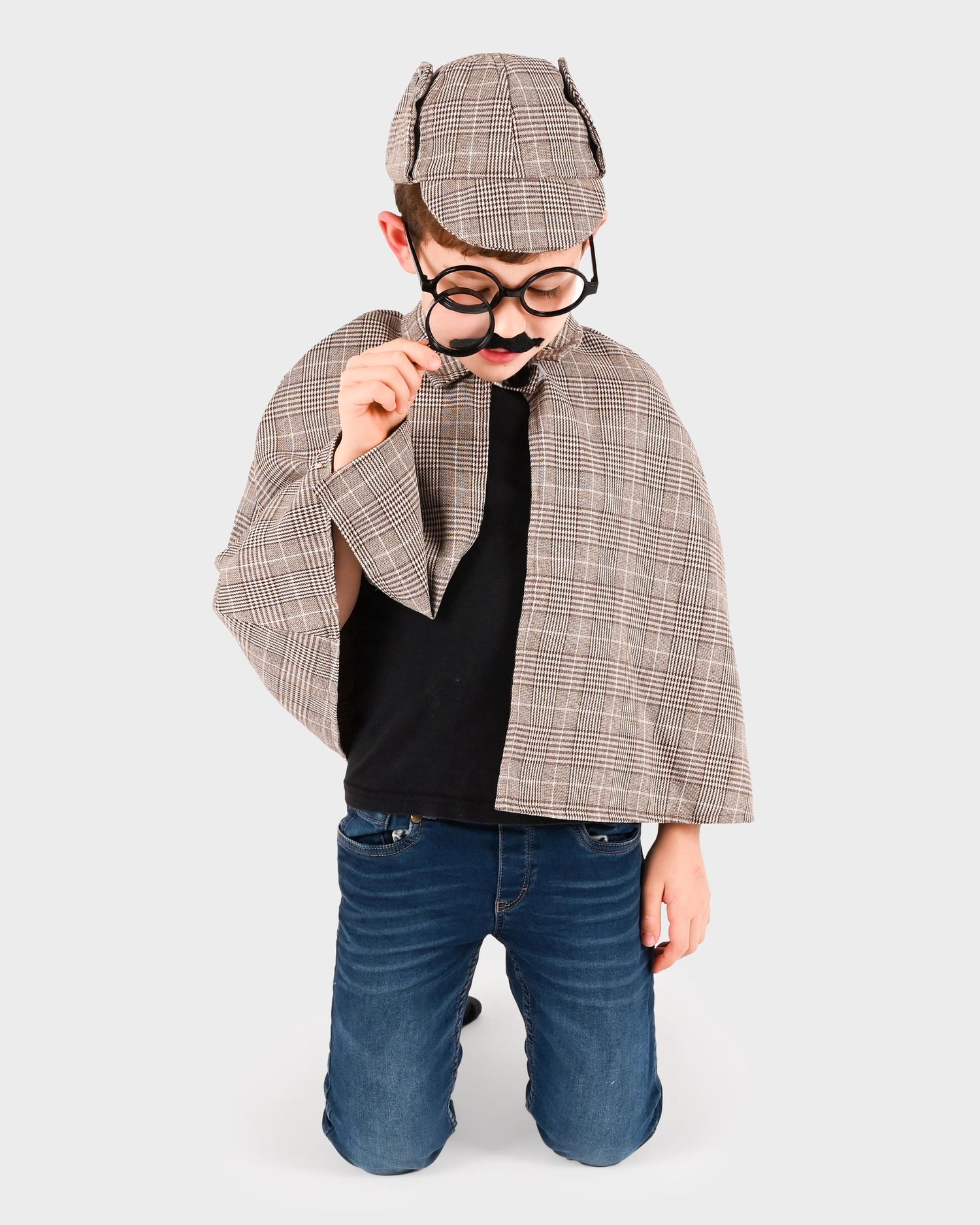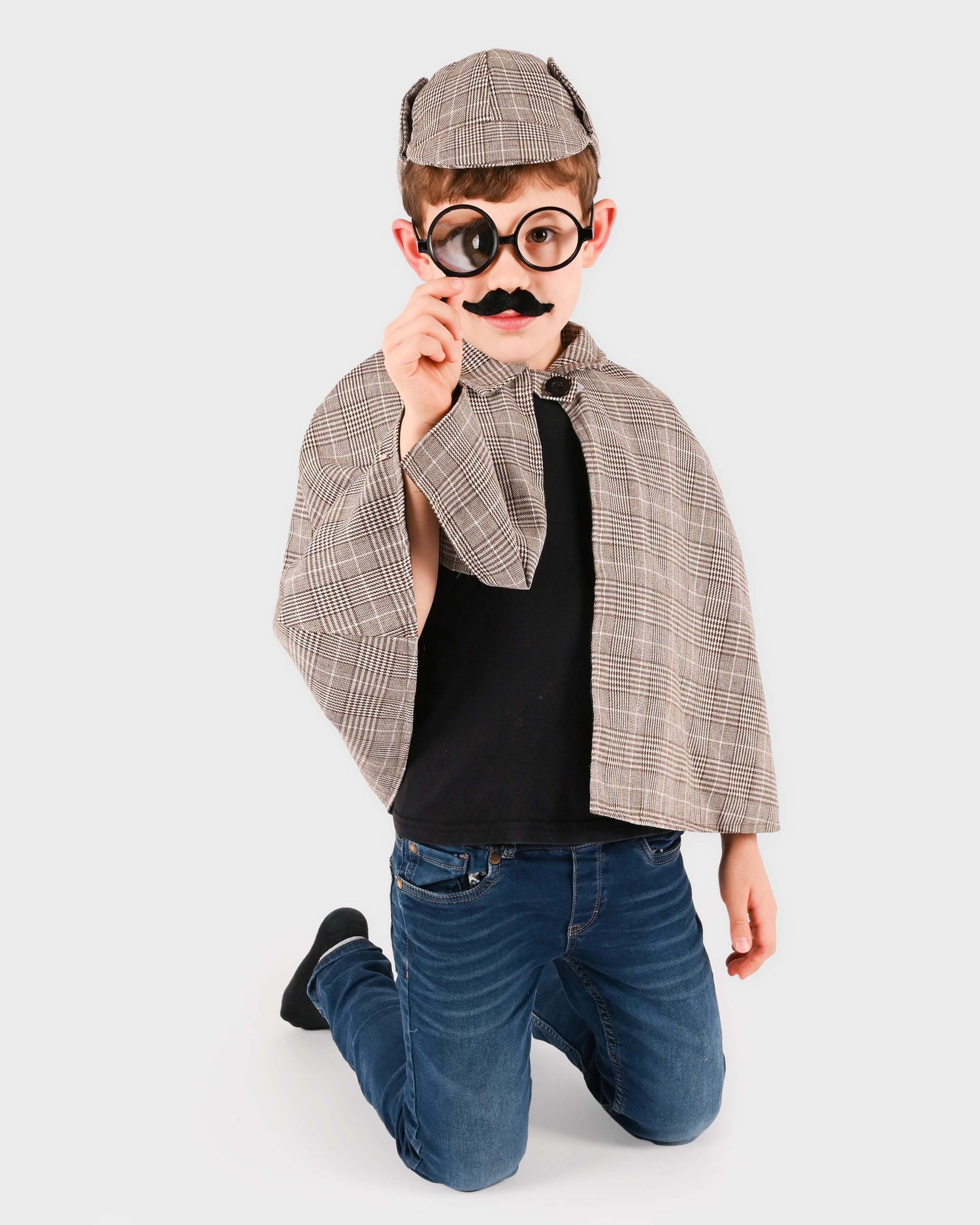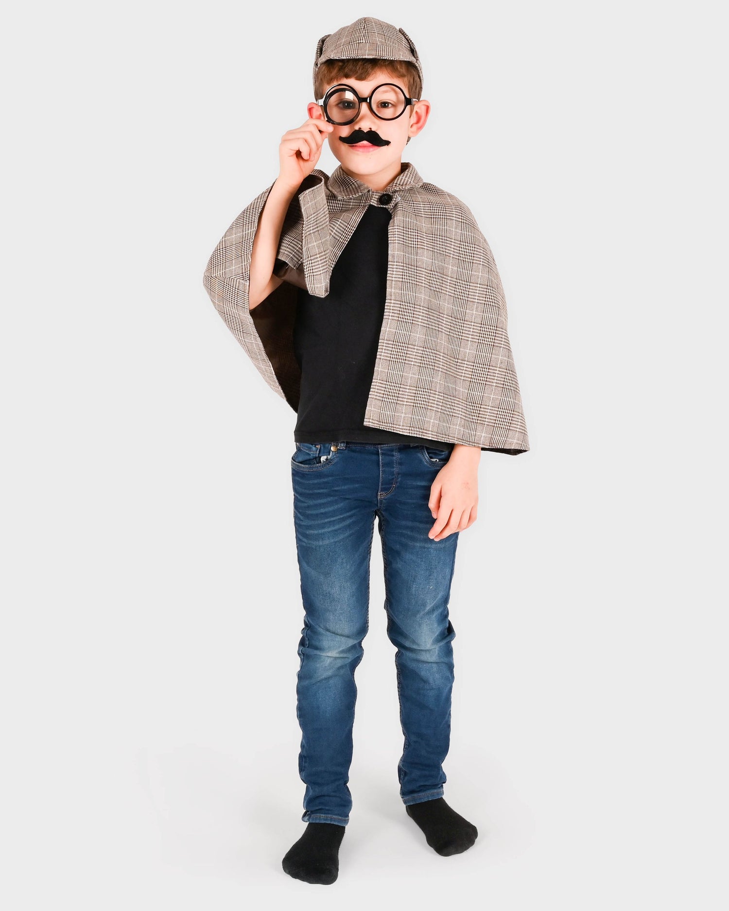 Das Detektiv Kostüm Set von Robetoy ist das ideale Outfit für kleine Spürnasen im Alter von 6-8 Jahren. Das Set beinhaltet einen Umhang, eine Mütze, zwei falsche Schnurrbärte, eine Brille und eine Kunststofflupe, um den Nachwuchs in die Welt der Detektive eintauchen zu lassen.