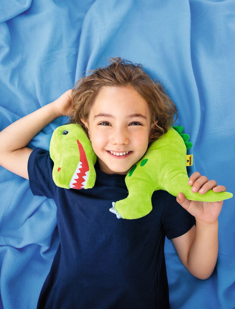 Das Dino Nackenkissen von Moses, ist der perfekte Reisebegleiter für Dino-Fans. Lange Auto- oder Zugfahrten sind für Kinder oftmals nicht nur langweilig, sondern auch unbequem. Früher oder später schlafen sie dann ein, wobei aber meist der Kopf nach vorne fällt, was die Hals- und Nackenmuskulatur belastet. Das Dino Nackenkissen stützt den Kopf beim Schlafen und sorgt für eine bequemere Reise. Was auf Reisen gemütlich ist, ist es auch zu Hause. In den eigenen vier Wänden kann das Nackenkissen ebenso zum Schlafen und Entspannen verwendet werden, ein Highlight im Kinderzimmer. Modell: 40228 + Nackenkissen aus Plüsch + Handwäsche empfohlen + mit Glitzerstoff an den Füßen