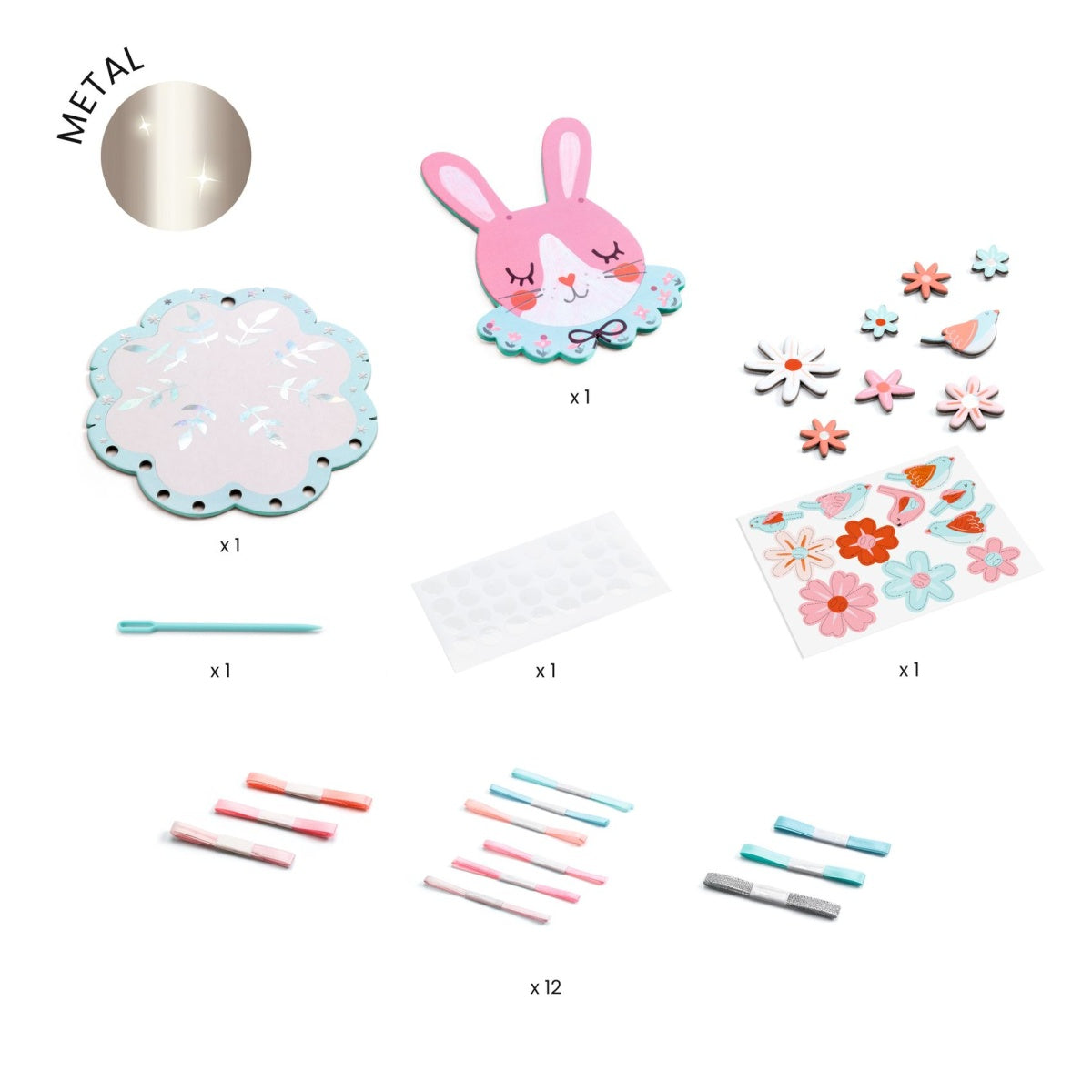 Ein Kreativset von Djeco, dass speziell für kleine Kinder ab 4 Jahren geeignet ist, um einen hübschen Traumfänger zu basteln.