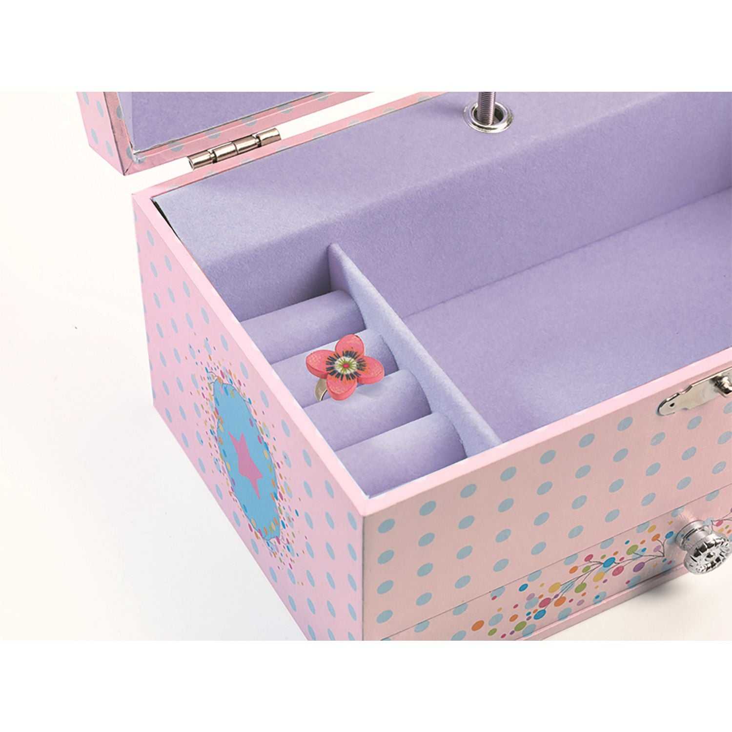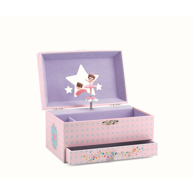 Zauberhaftes Schmuckkästchen „Ballerina´s melody“ DJ06597 mit Spieluhr von Djeco, mit Schublade um tolle Schätze aufzubewahren. Beim Aufklappen ertönt eine zarte Musik. Für kleine Musikliebhaber ab 4 Jahren